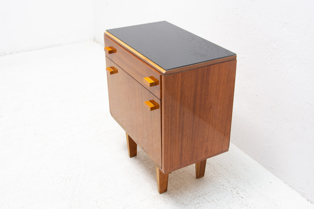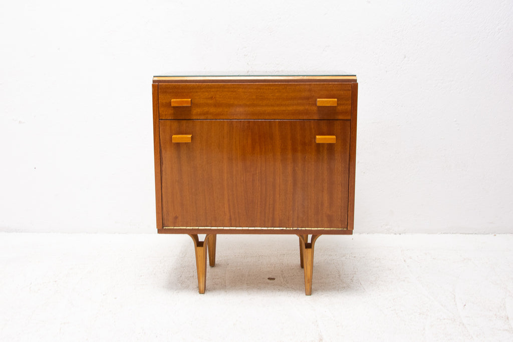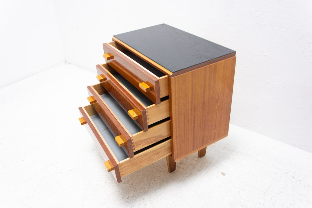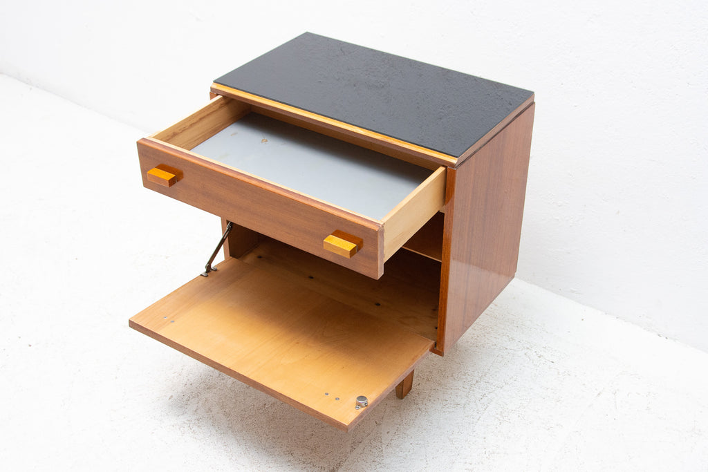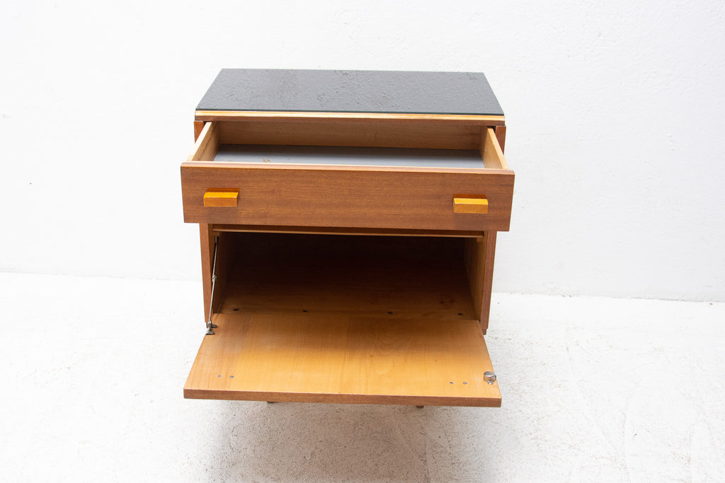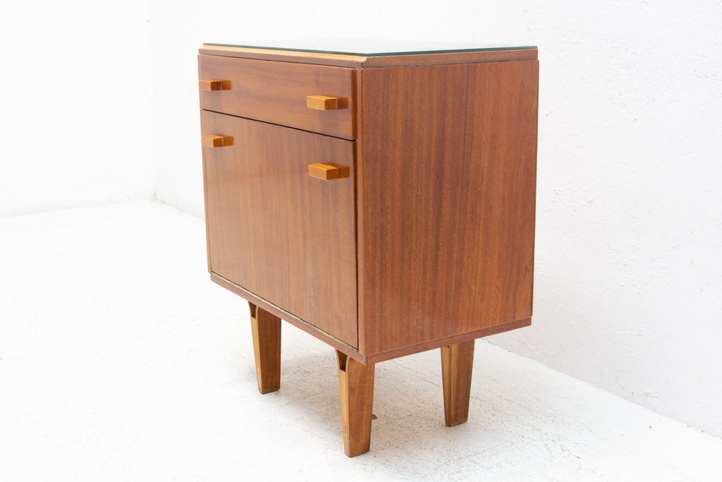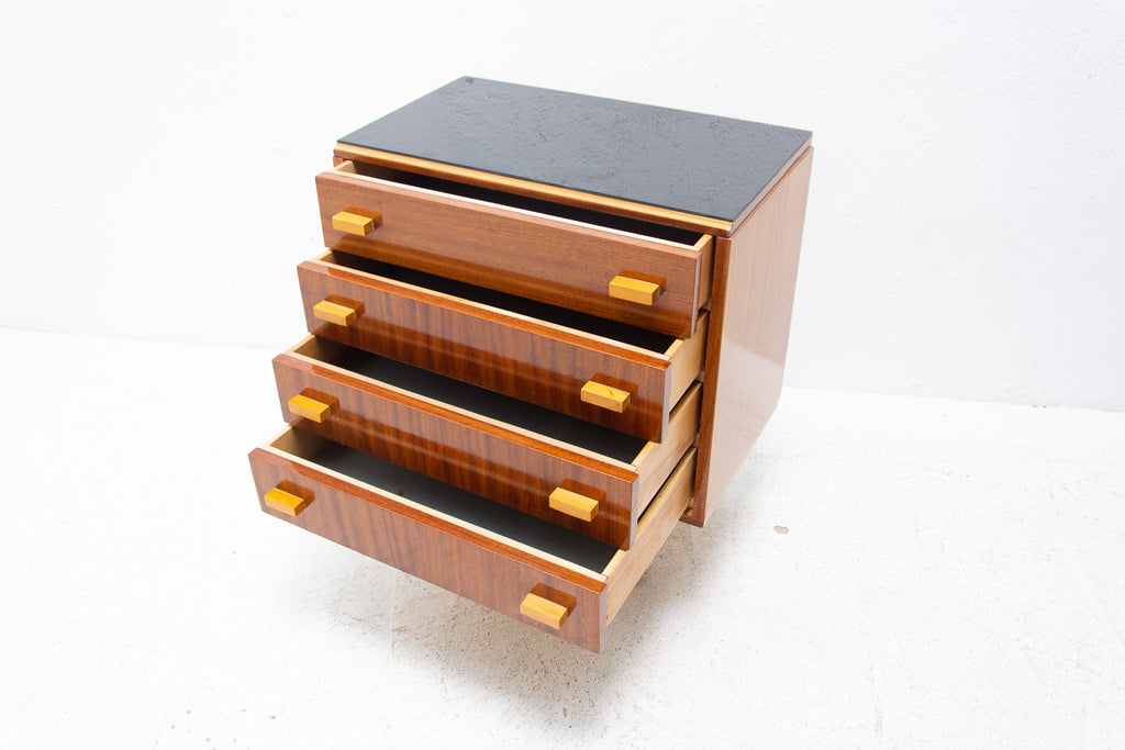 Pair of Mid century mahogany night stands, chest of drawers, Frantisek Mezulanik, 1970s