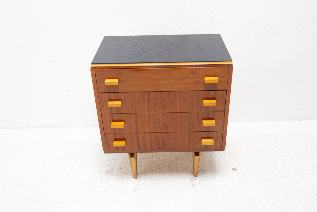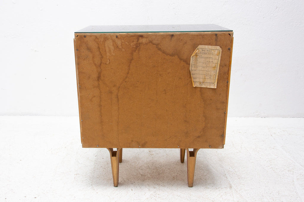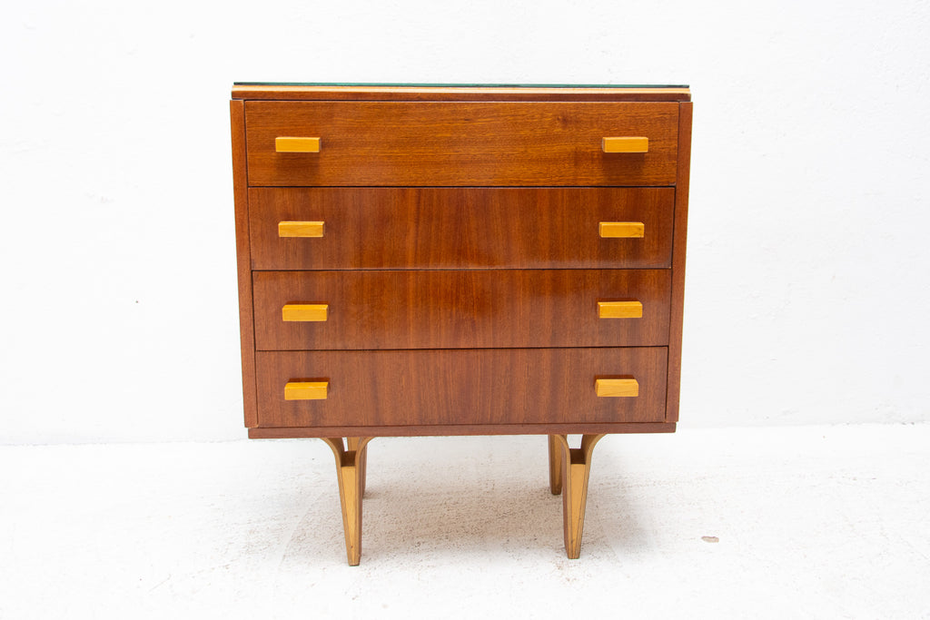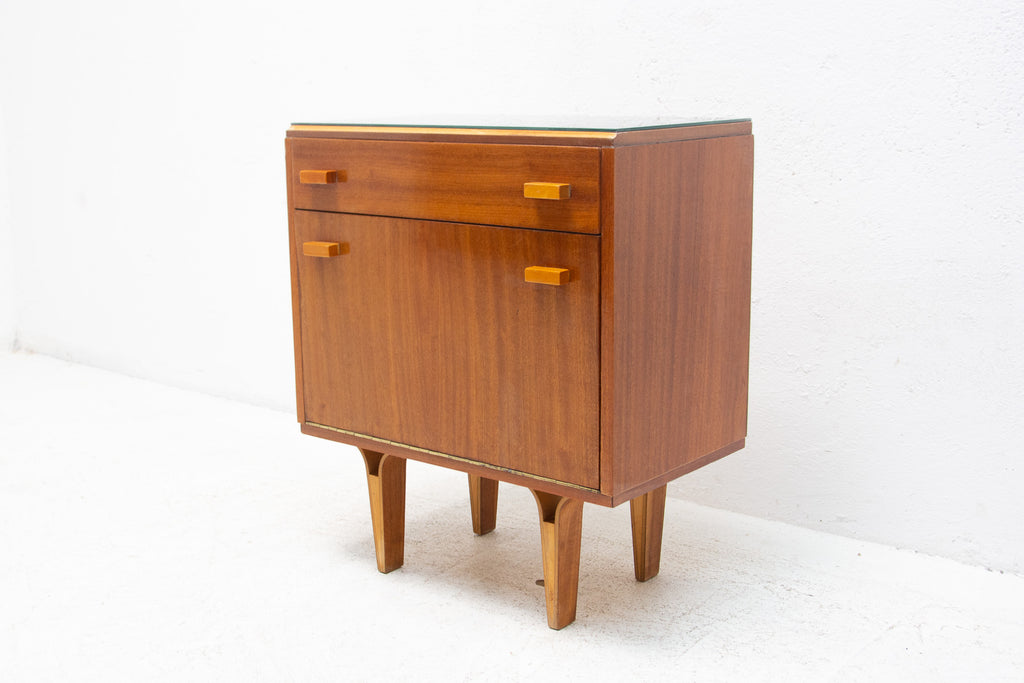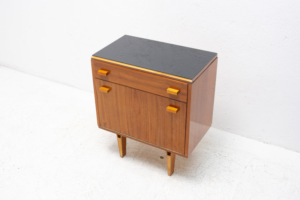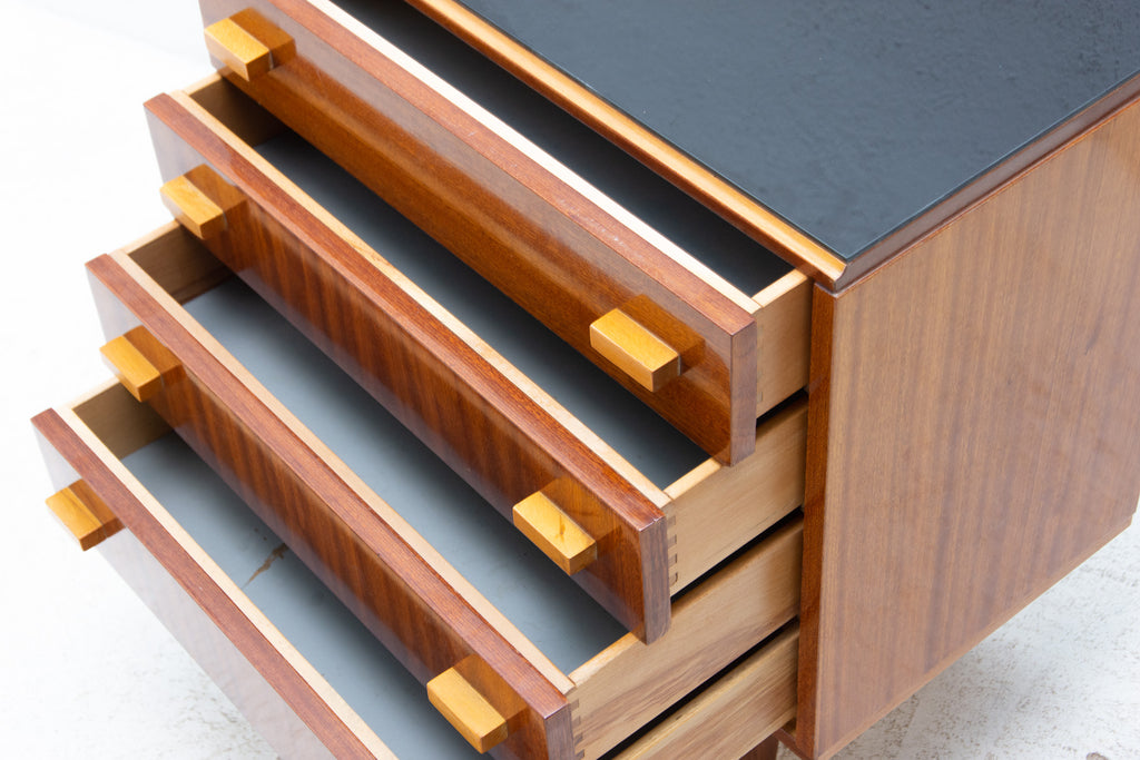 Pair of Mid century mahogany night stands, chest of drawers, Frantisek Mezulanik, 1970s