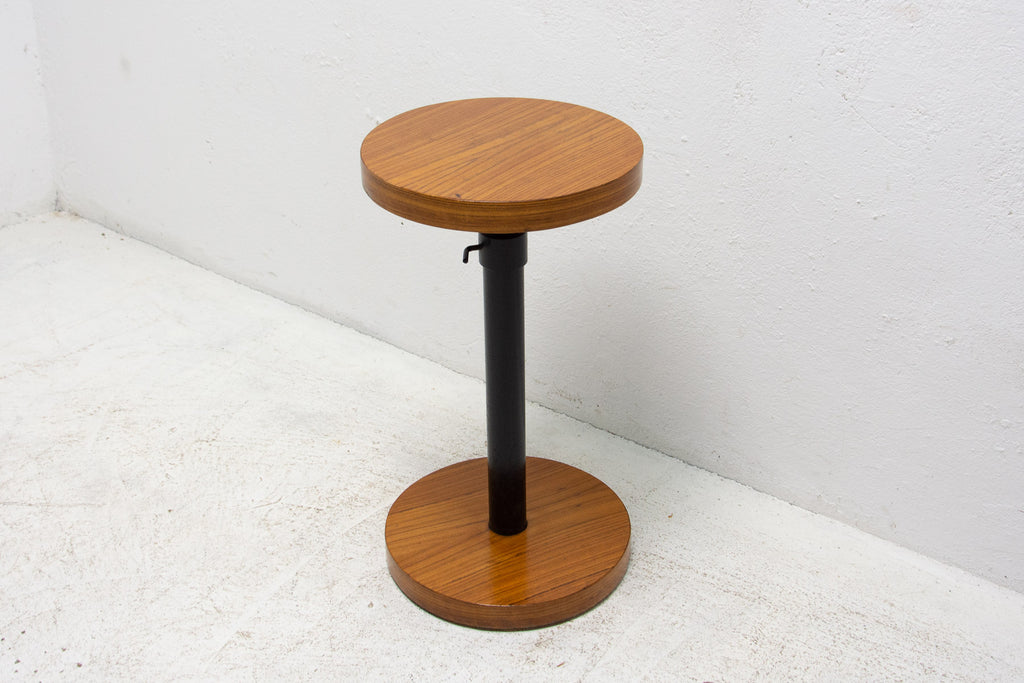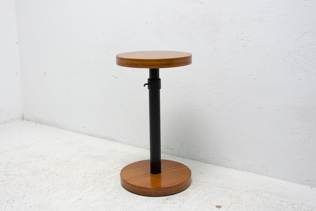 This occasional positioning side table or plant stand was made in the former Czechoslovakia in the 1930´s. It was made of cherry wood and iron. The height can be extended up to 93 cm. The table is completely refurbished and in great condition.