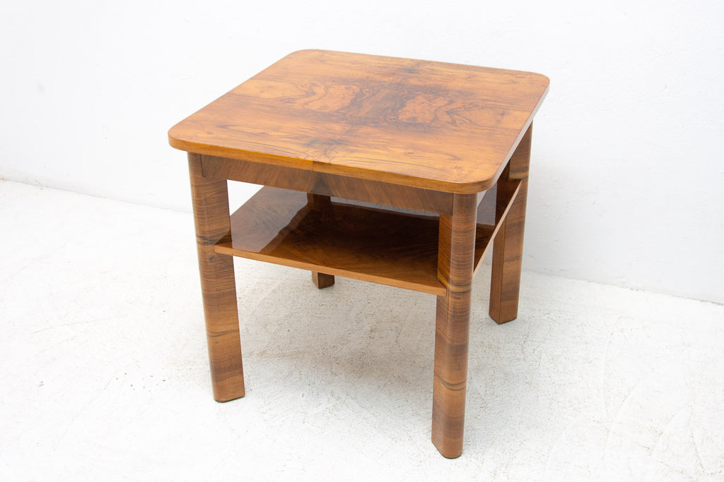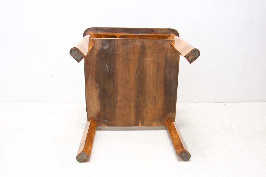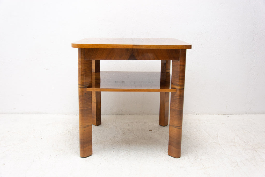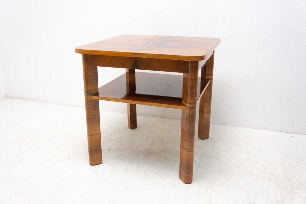 This Art Deco coffee table was made in the former Czechoslovakia in the 1930´s. Attribute THONET. It´s veneered by the burl walnut veneer. In excellent condition-fully renovated to a high gloss.