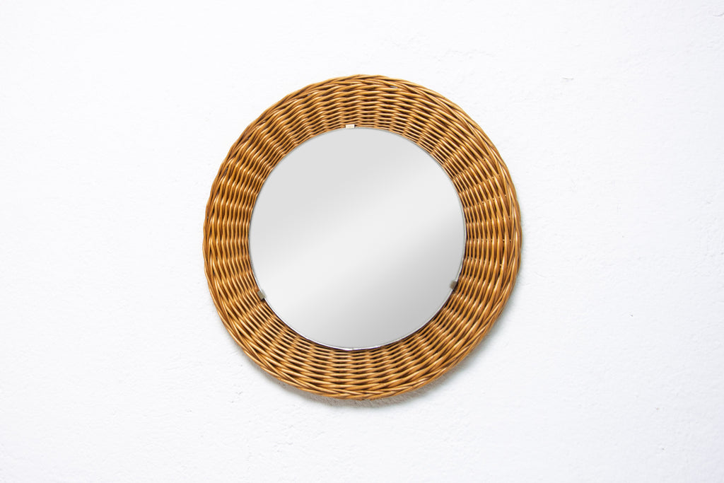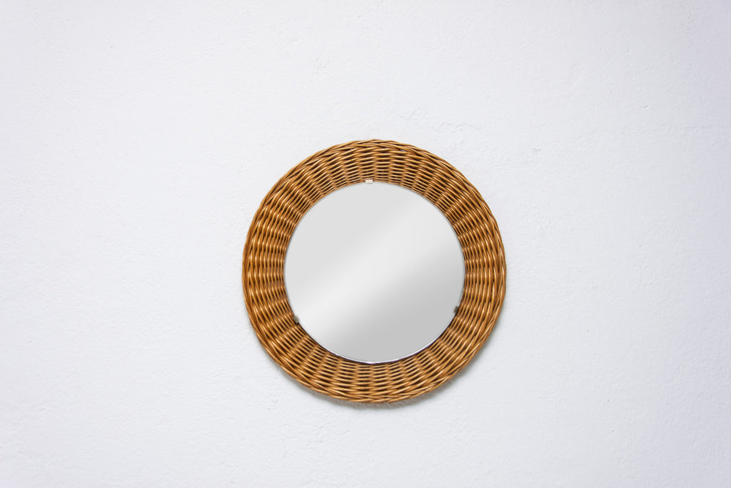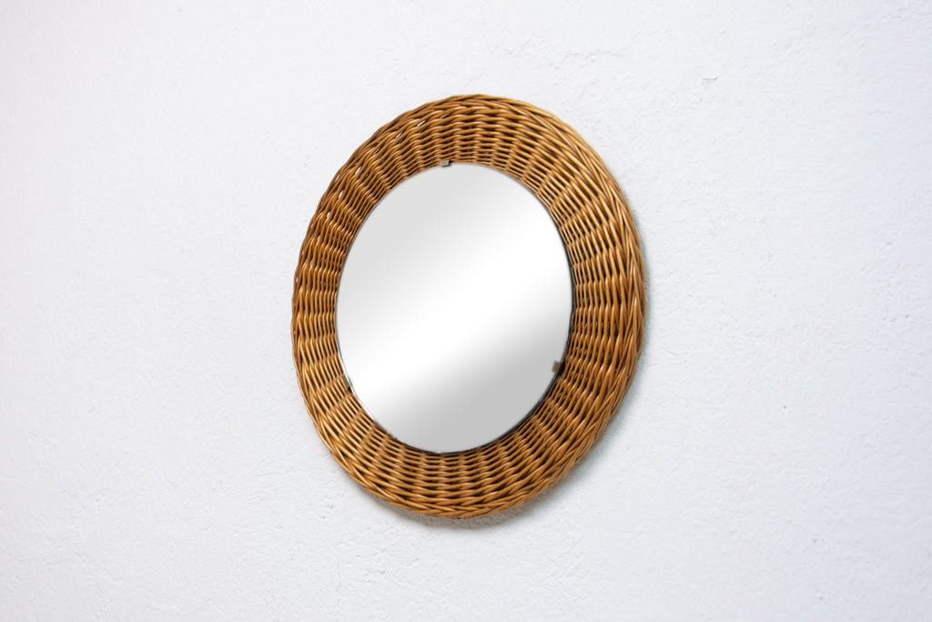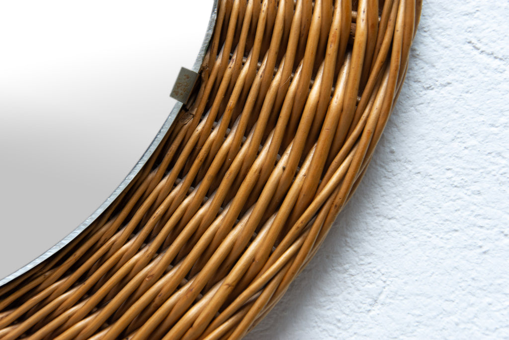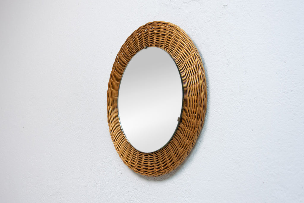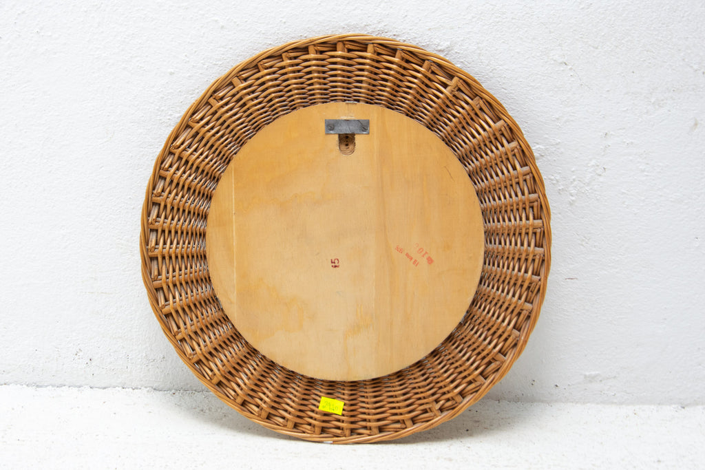 Czechoslovak rattan mirror designed by Jan Kalous for ÚLUV in the 1960´s. Very simple and elegant design. In good Vintage condition, showing signs of age and using.