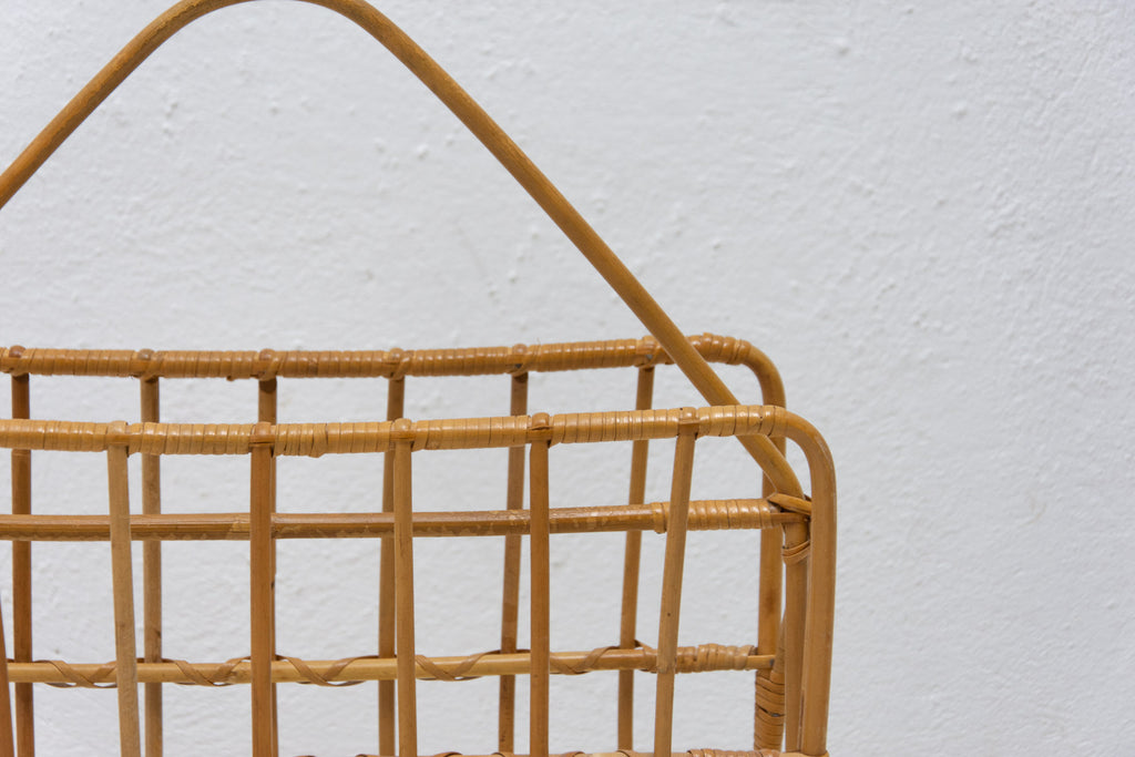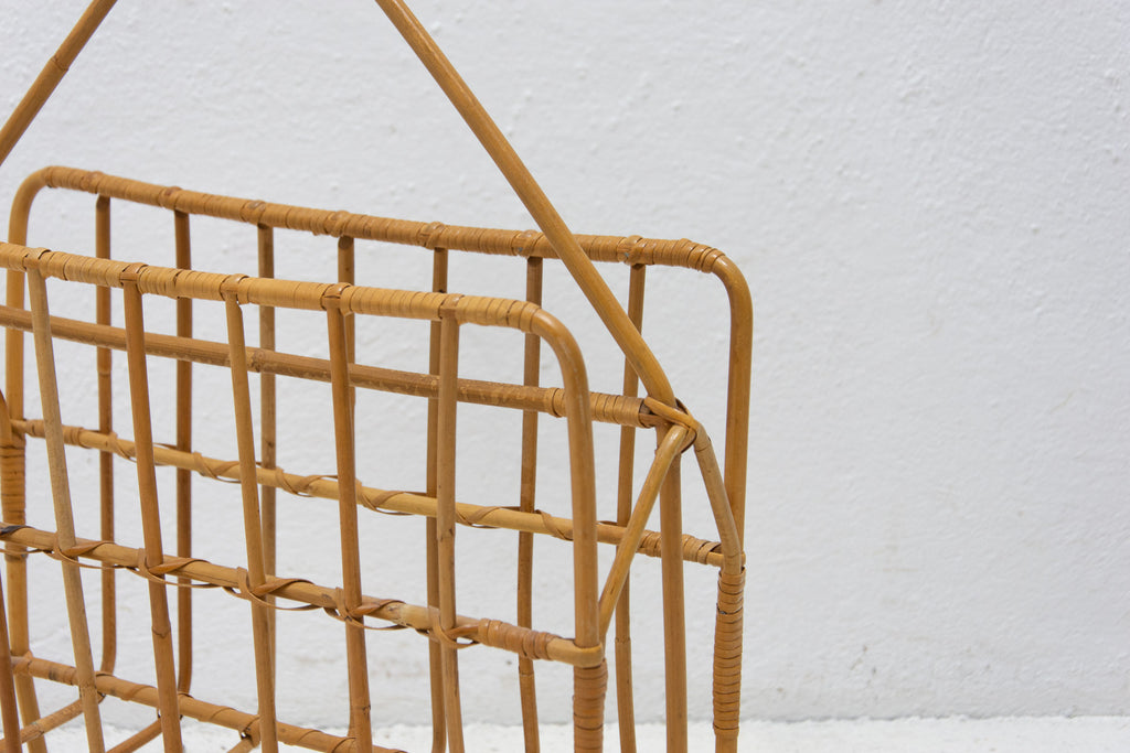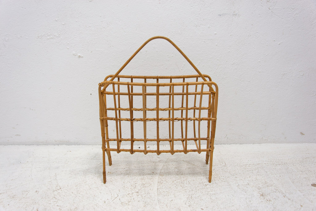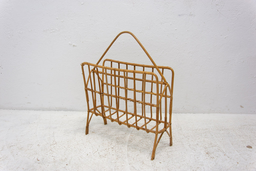 Mid century wicker magazine rack, Czechoslovakia, 1960s
