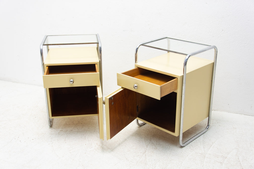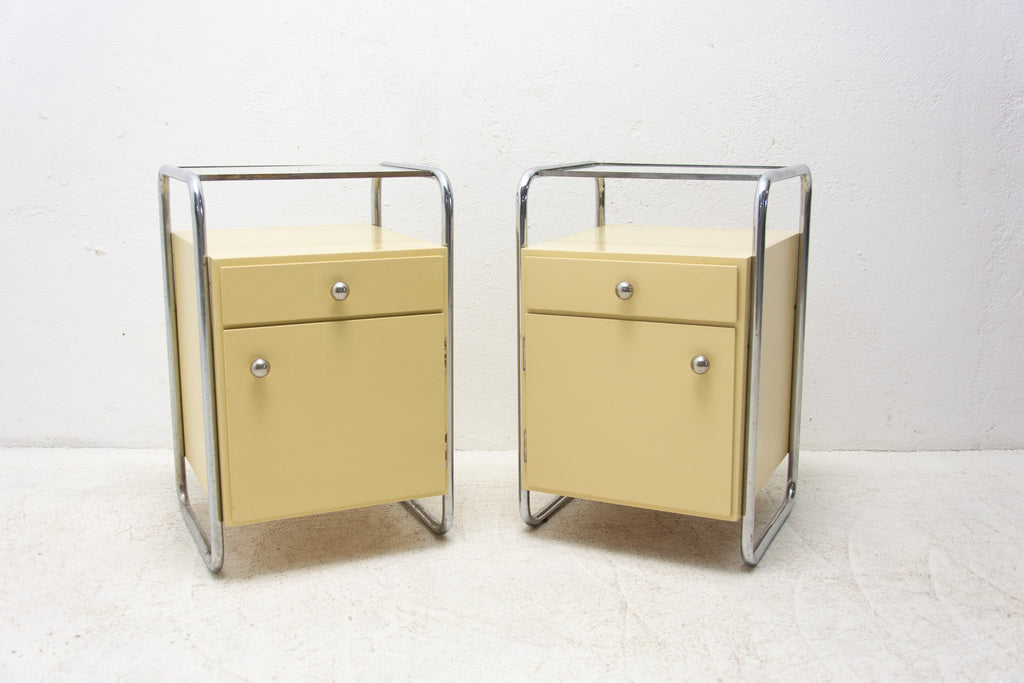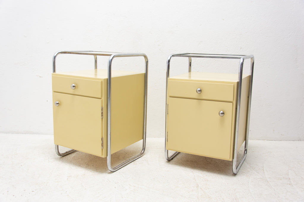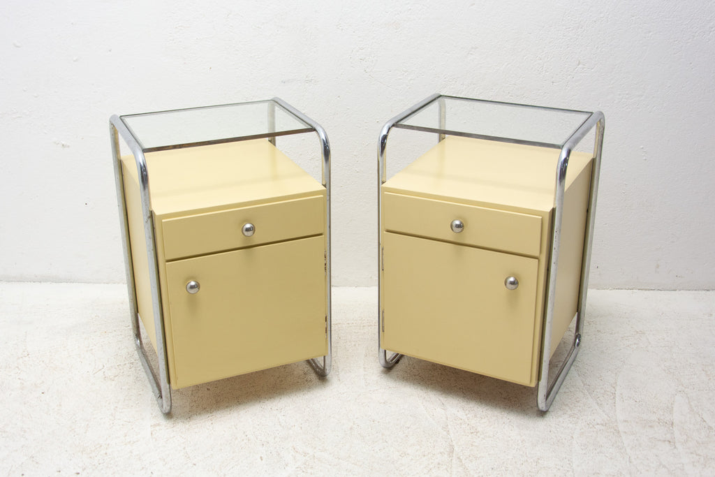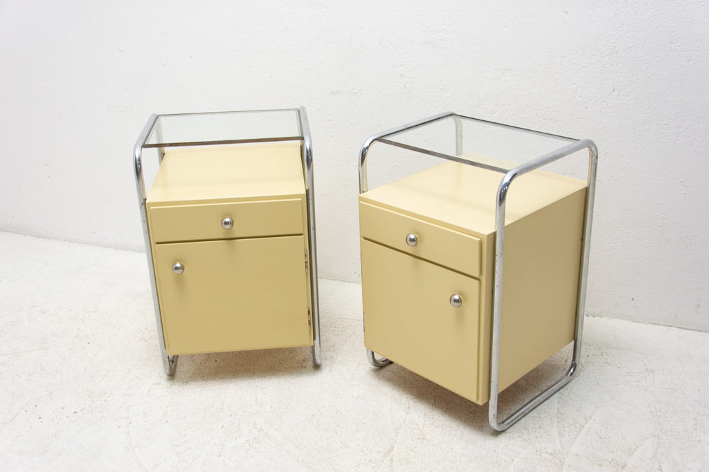 Pair of Bauhaus chrome bedside tables, 1930's, Czechoslovakia