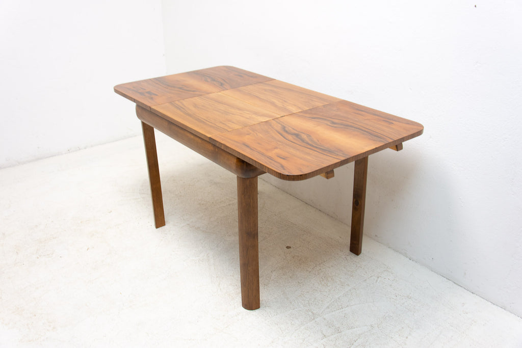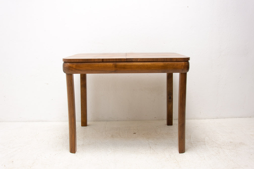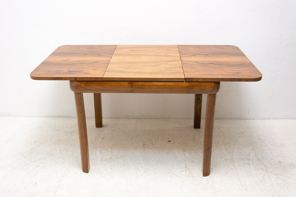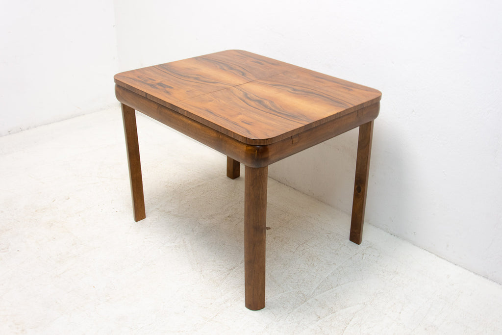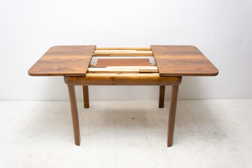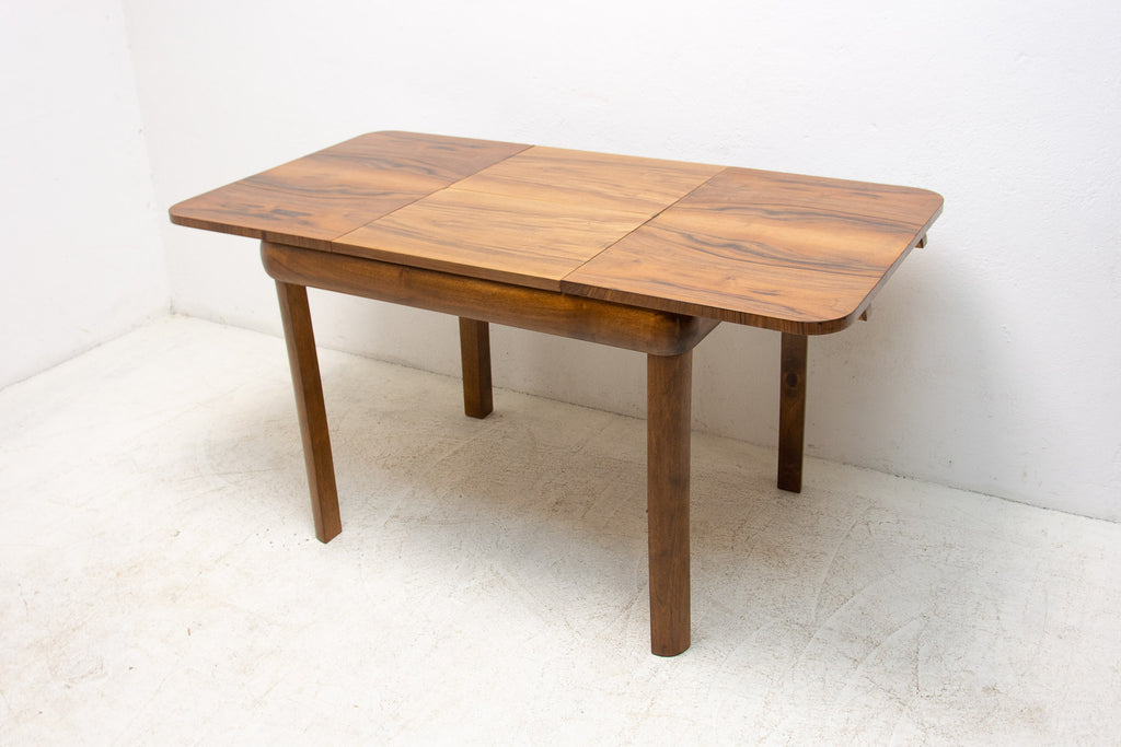 This midcentury adjustable dining table was made in the 1940s in the former Czechoslovakia. The table is in ART DECO style and was fully renovated to high gloss finish.