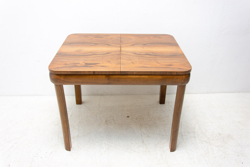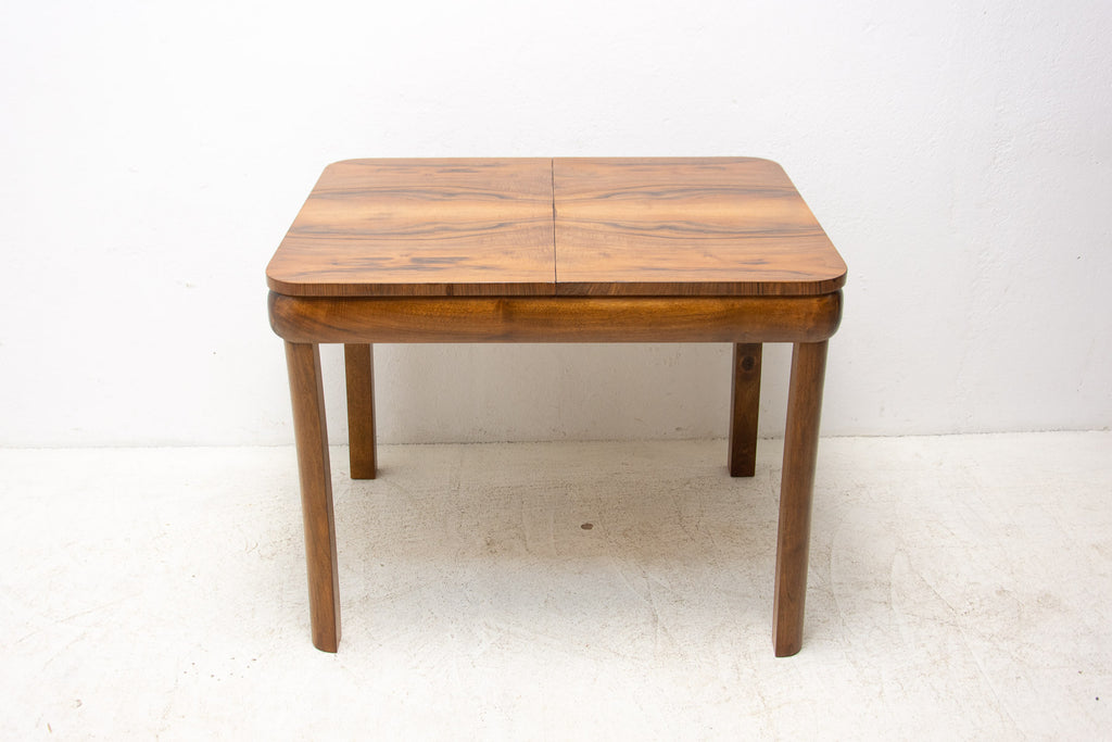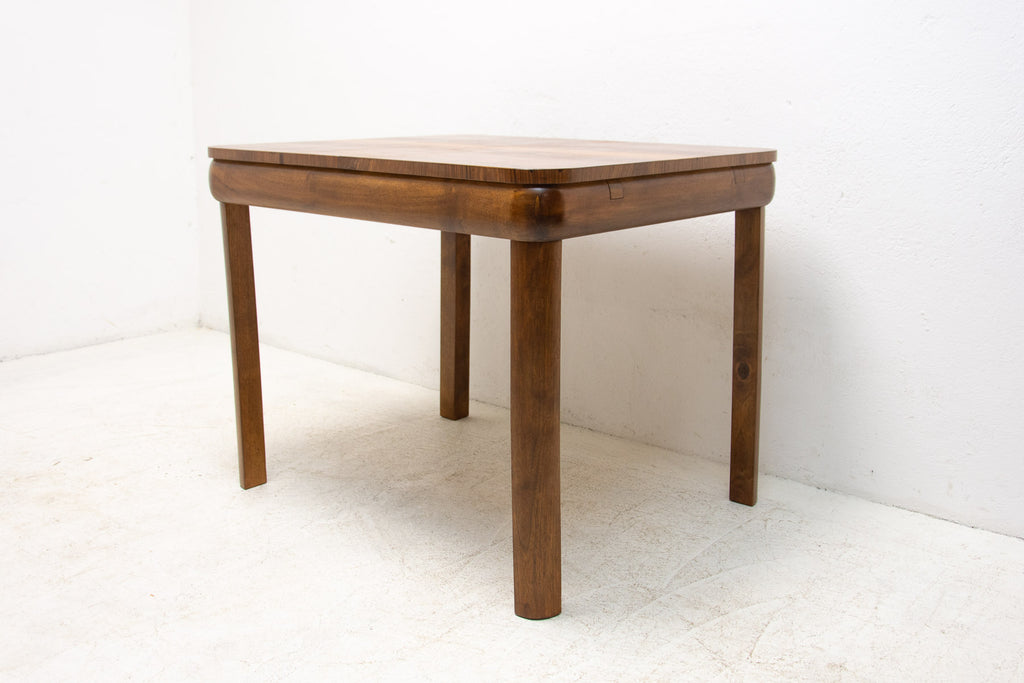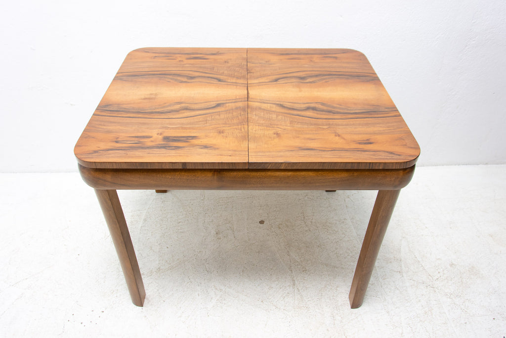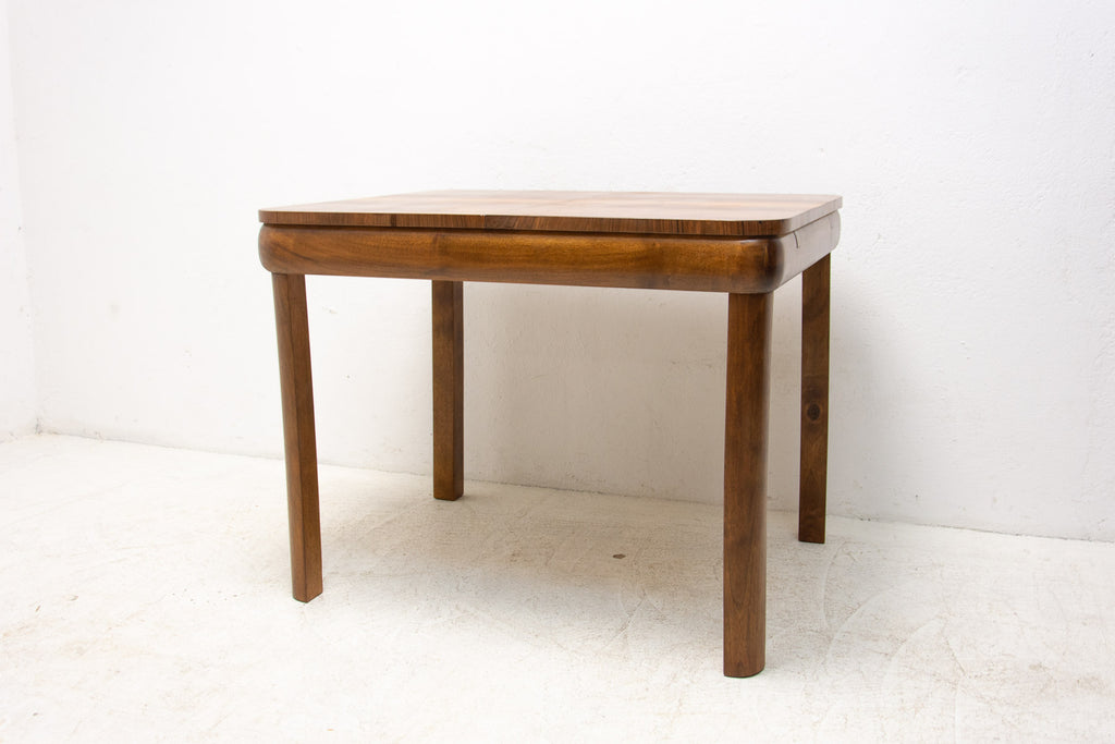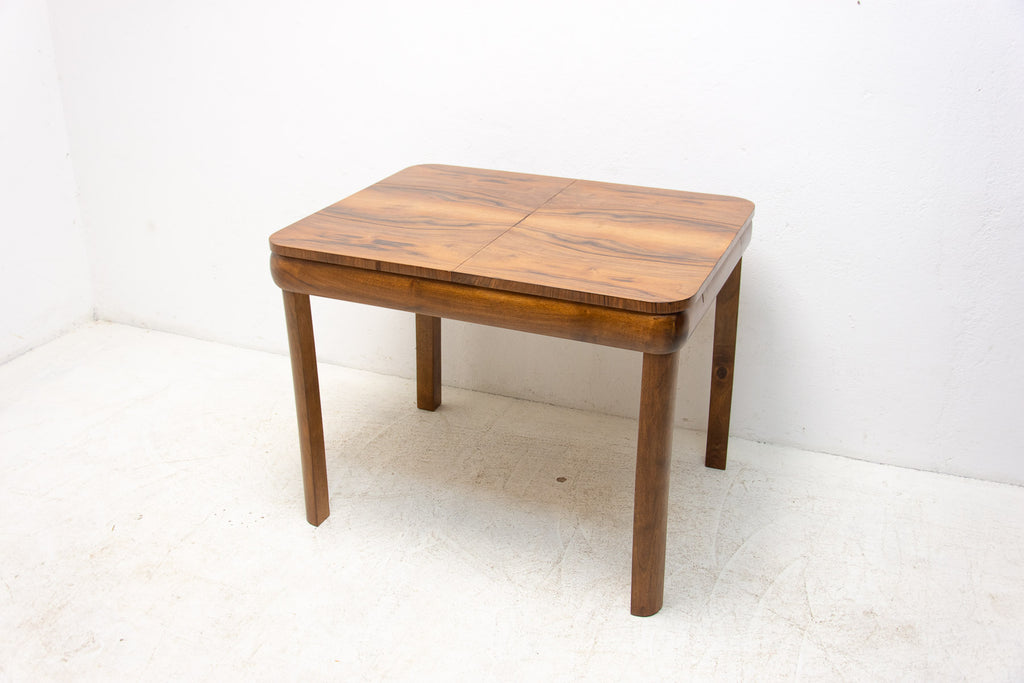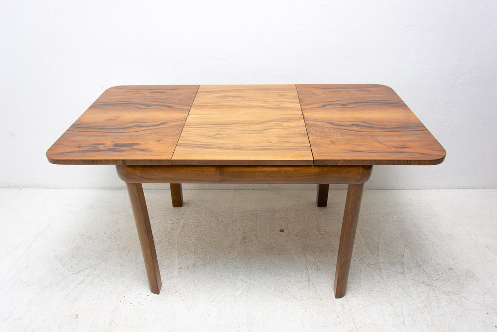This midcentury adjustable dining table was made in the 1940s in the former Czechoslovakia. The table is in ART DECO style and was fully renovated to high gloss finish.