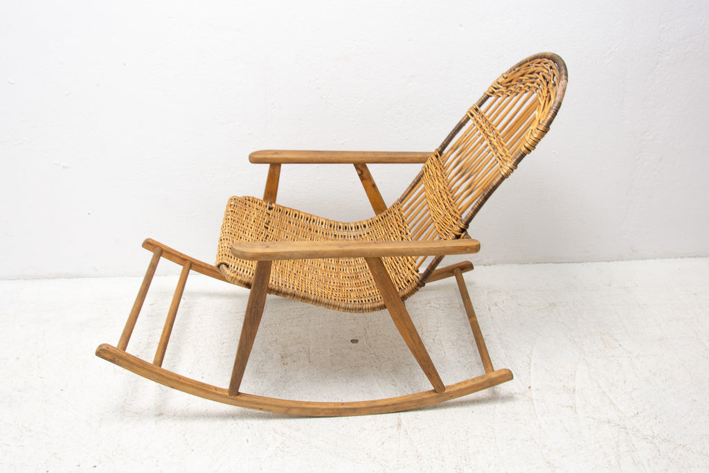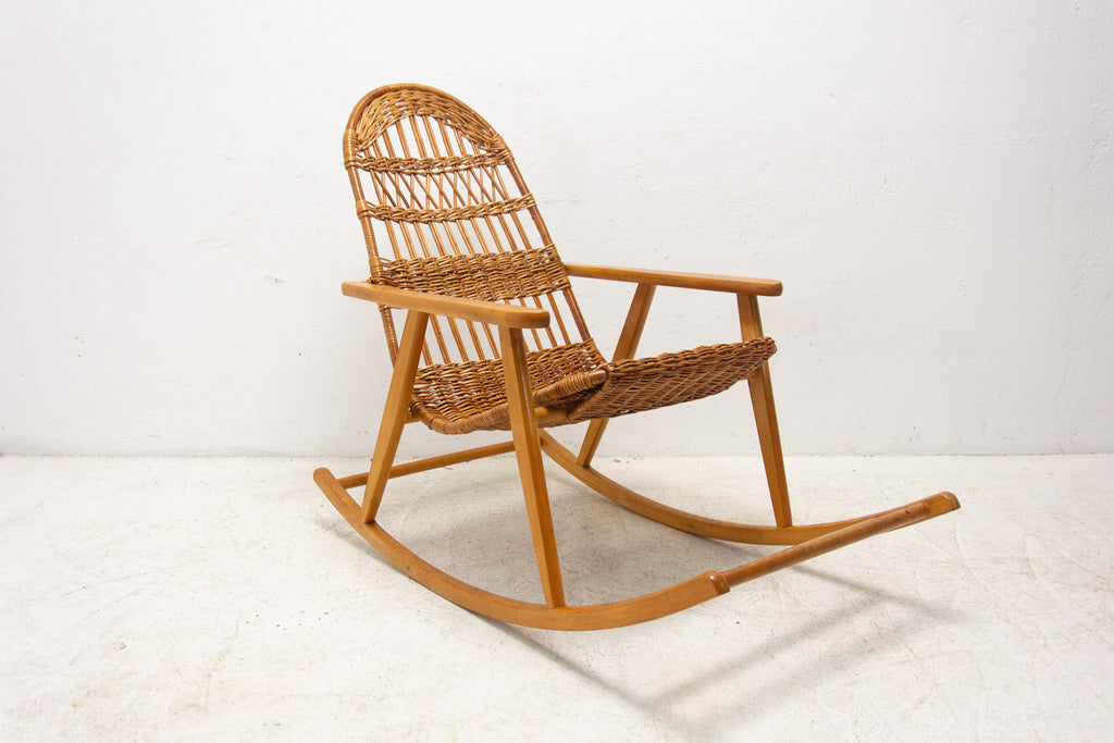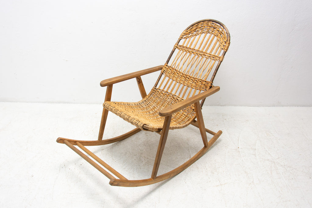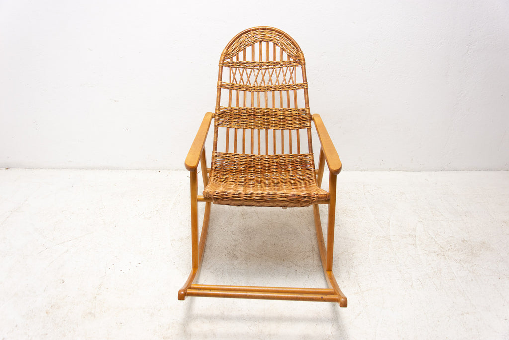 Mid Century Wicker rocking chair, Czechoslovakia, 1960s