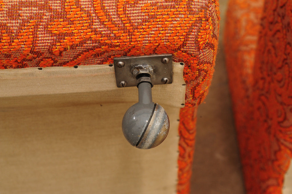 The chairs are fully upholstered, made of plywood, foam and fabric.
