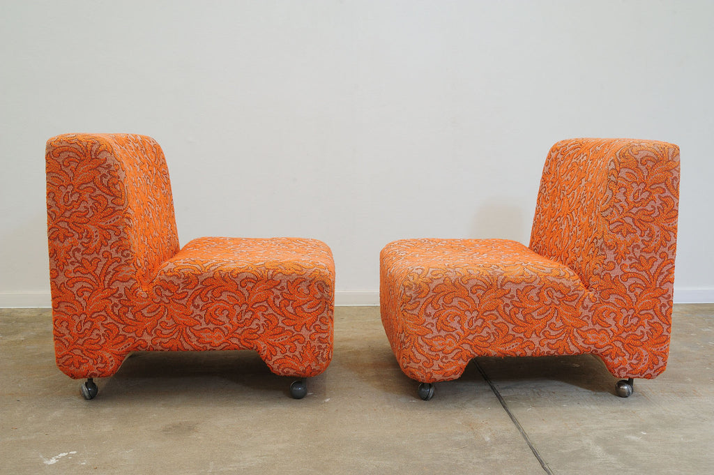 Eastern bloc Vintage armchairs on wheels, 1980s, Czechoslovakia