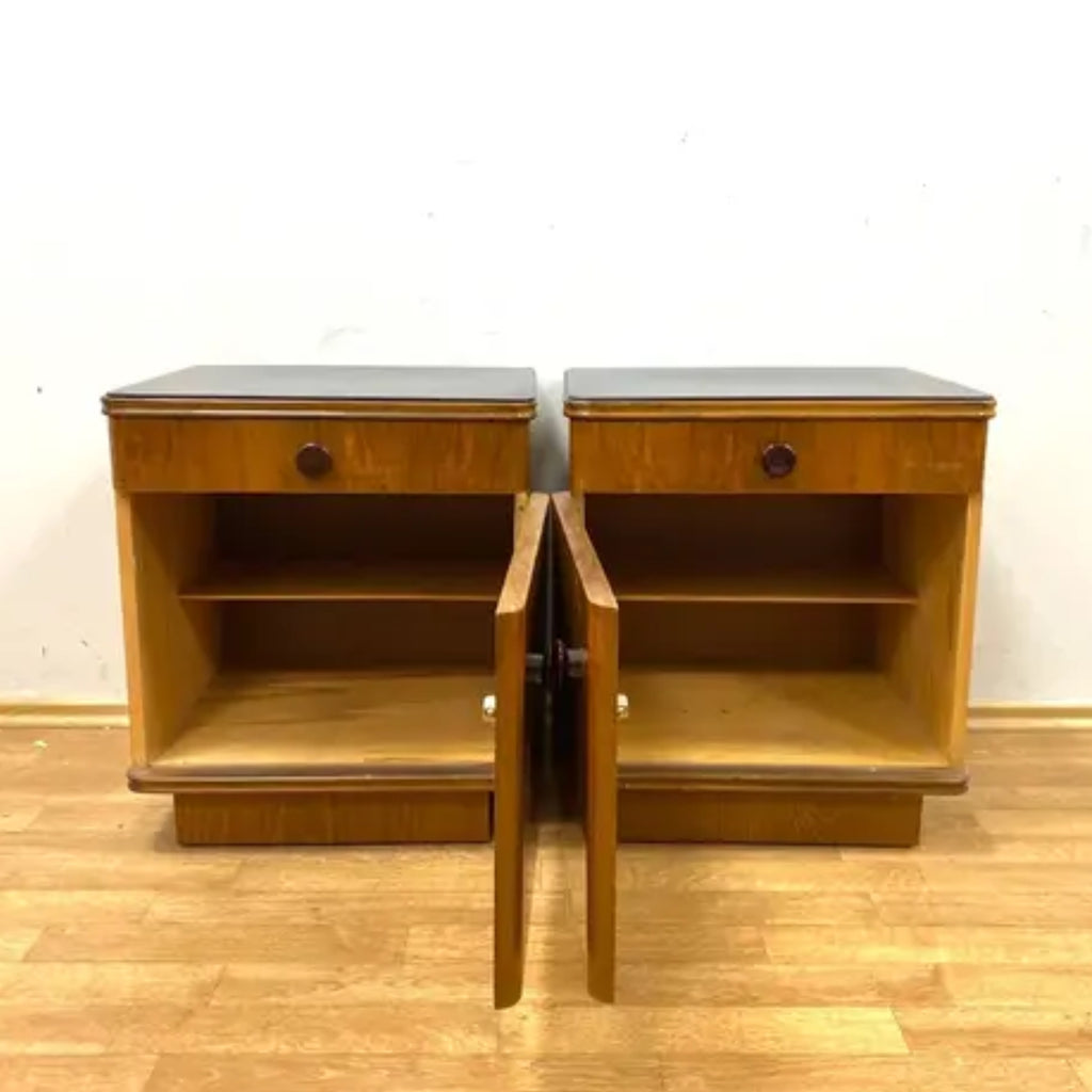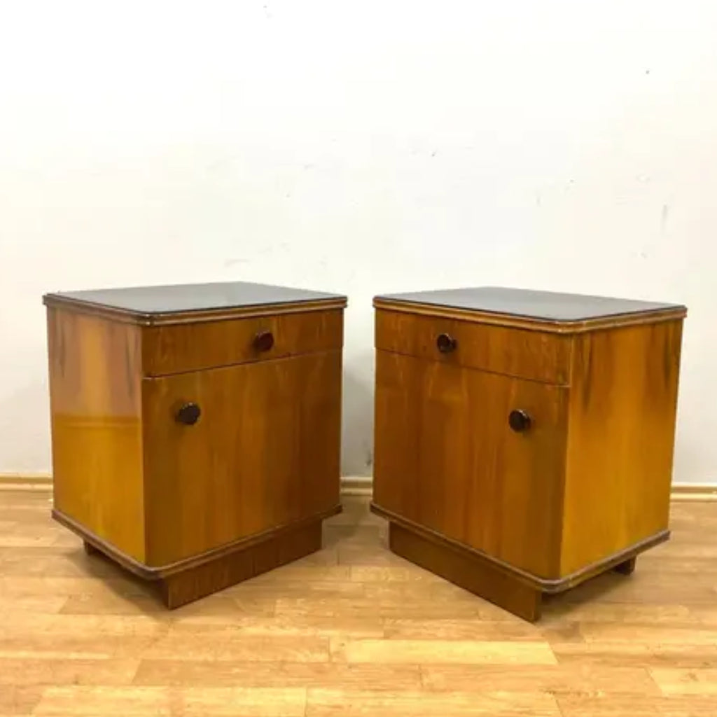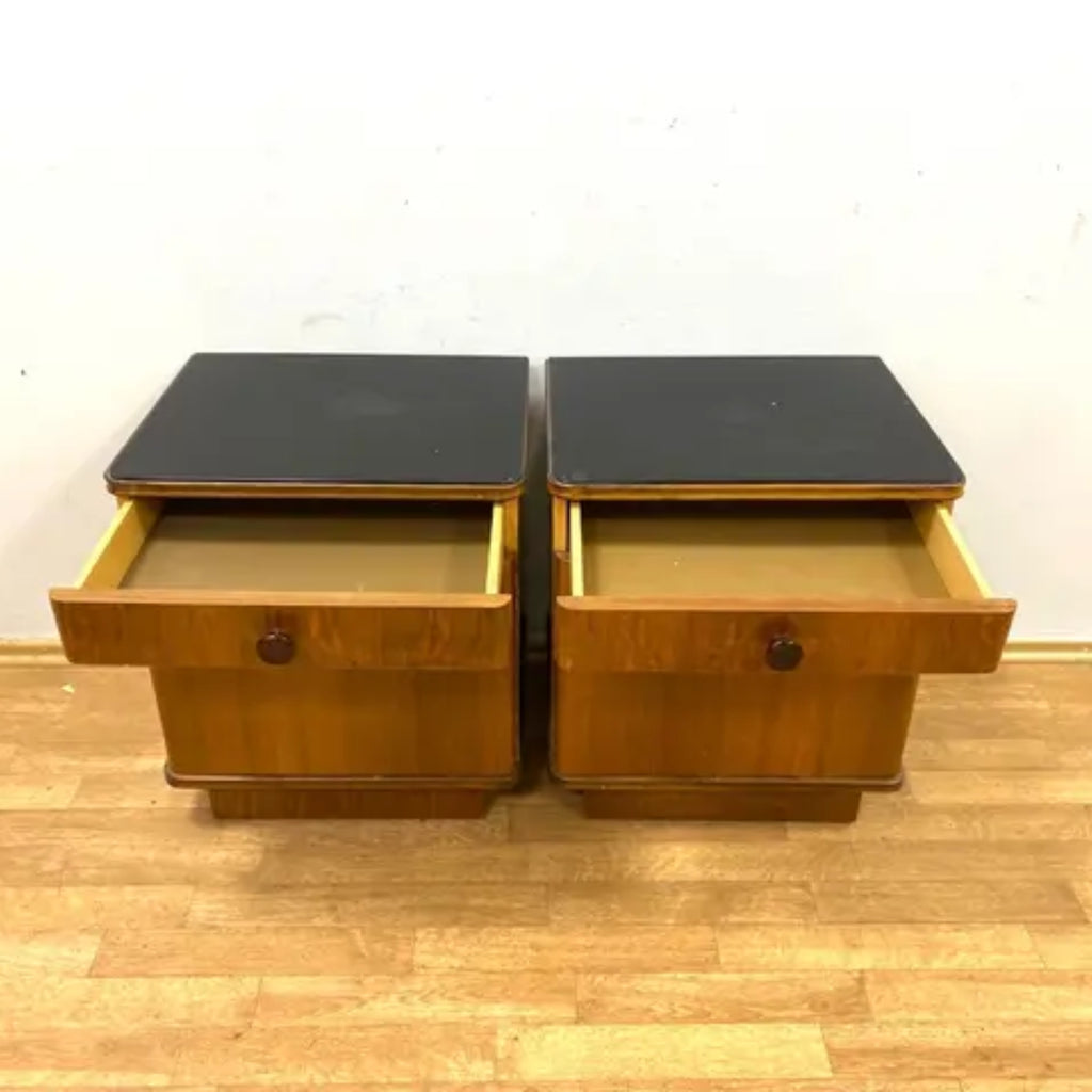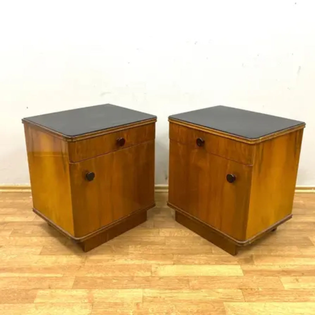 Set of 2 Retro Nightstands, Veneered Wood, 1960s