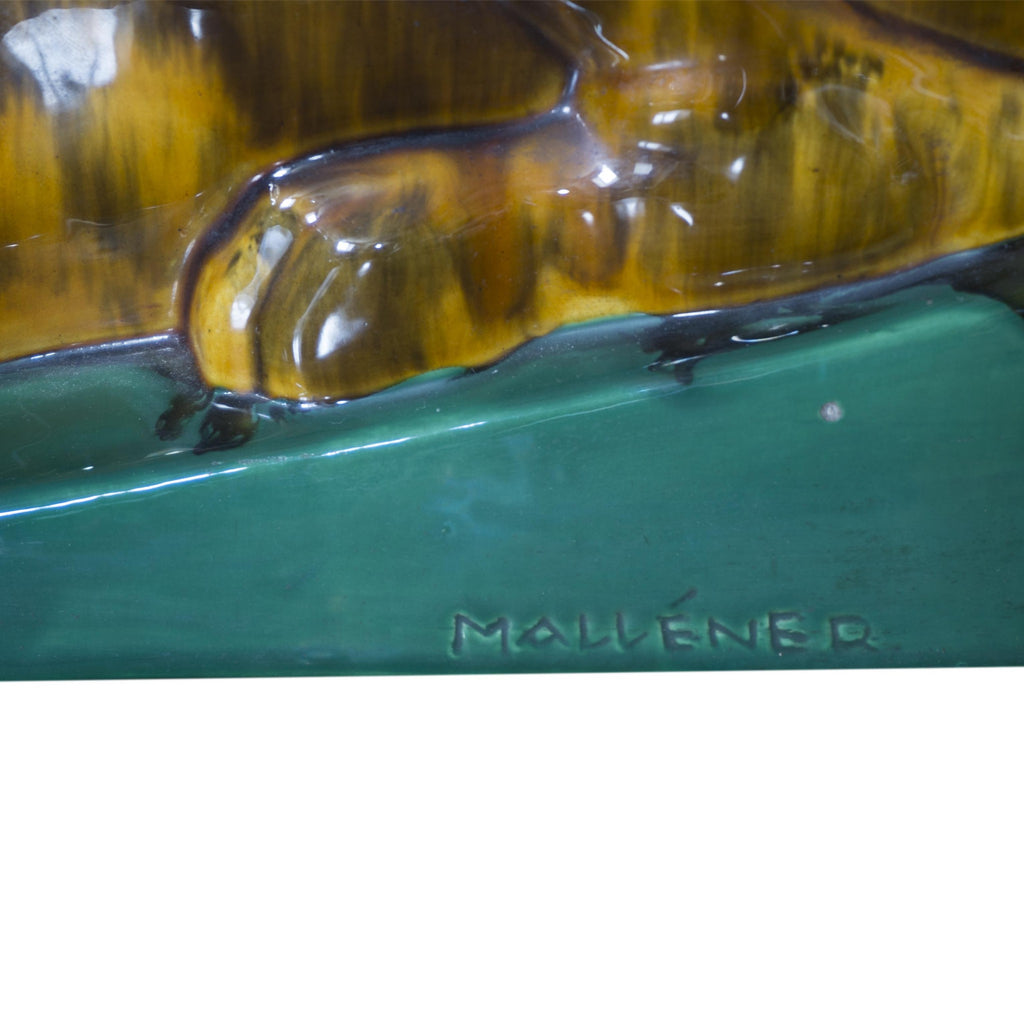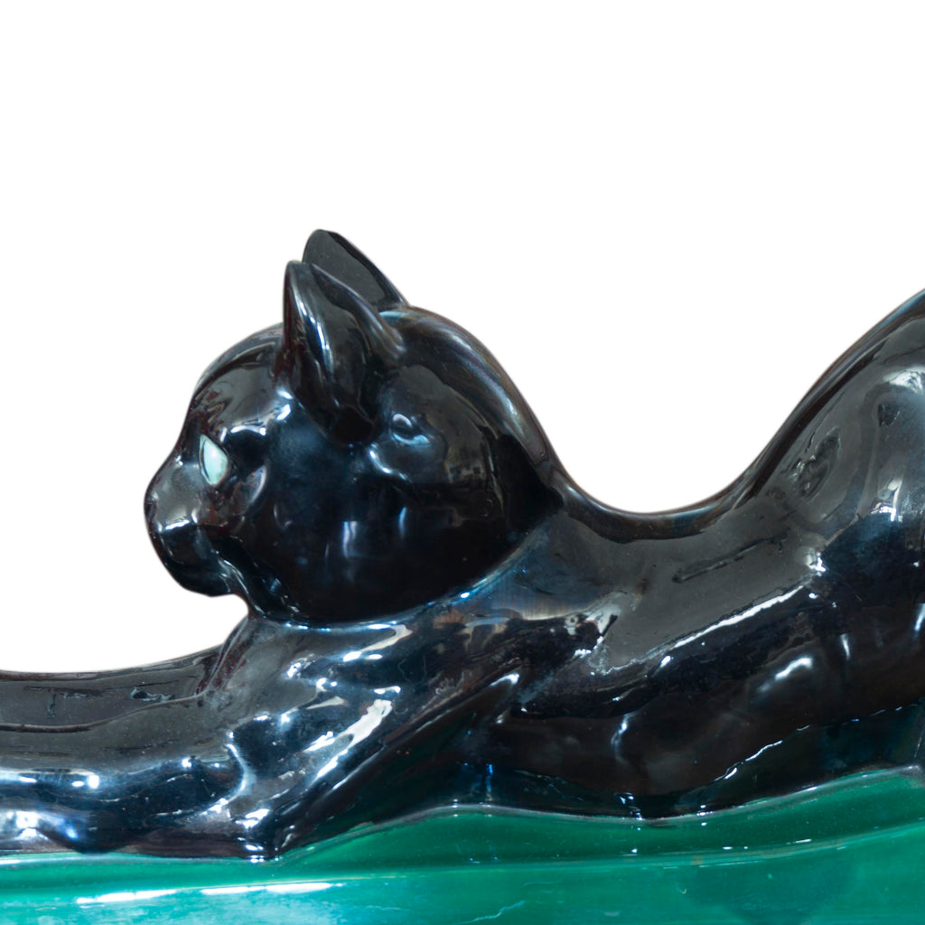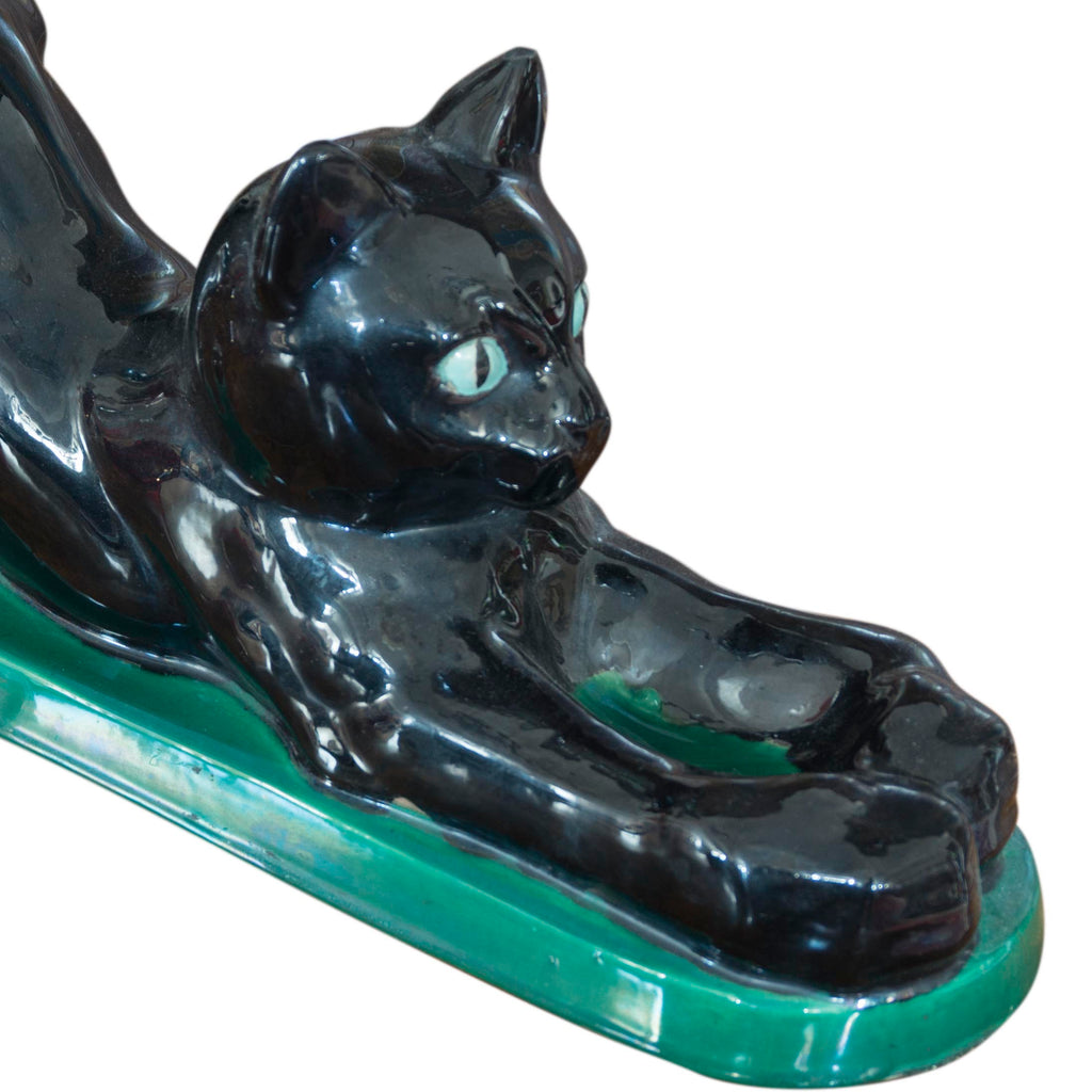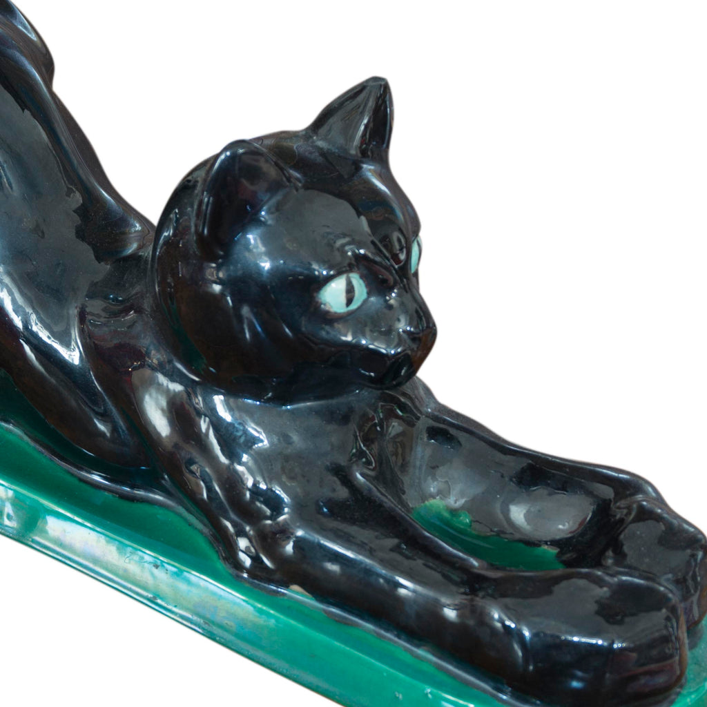 Deux chats en céramique grandeur nature. Un chat noir, un chat tigré. Tous deux de même taille. Signés Mallener en bas à gauche. Signé LM 830 sur la base. Travail exquis. Typique de la Sécession viennoise.