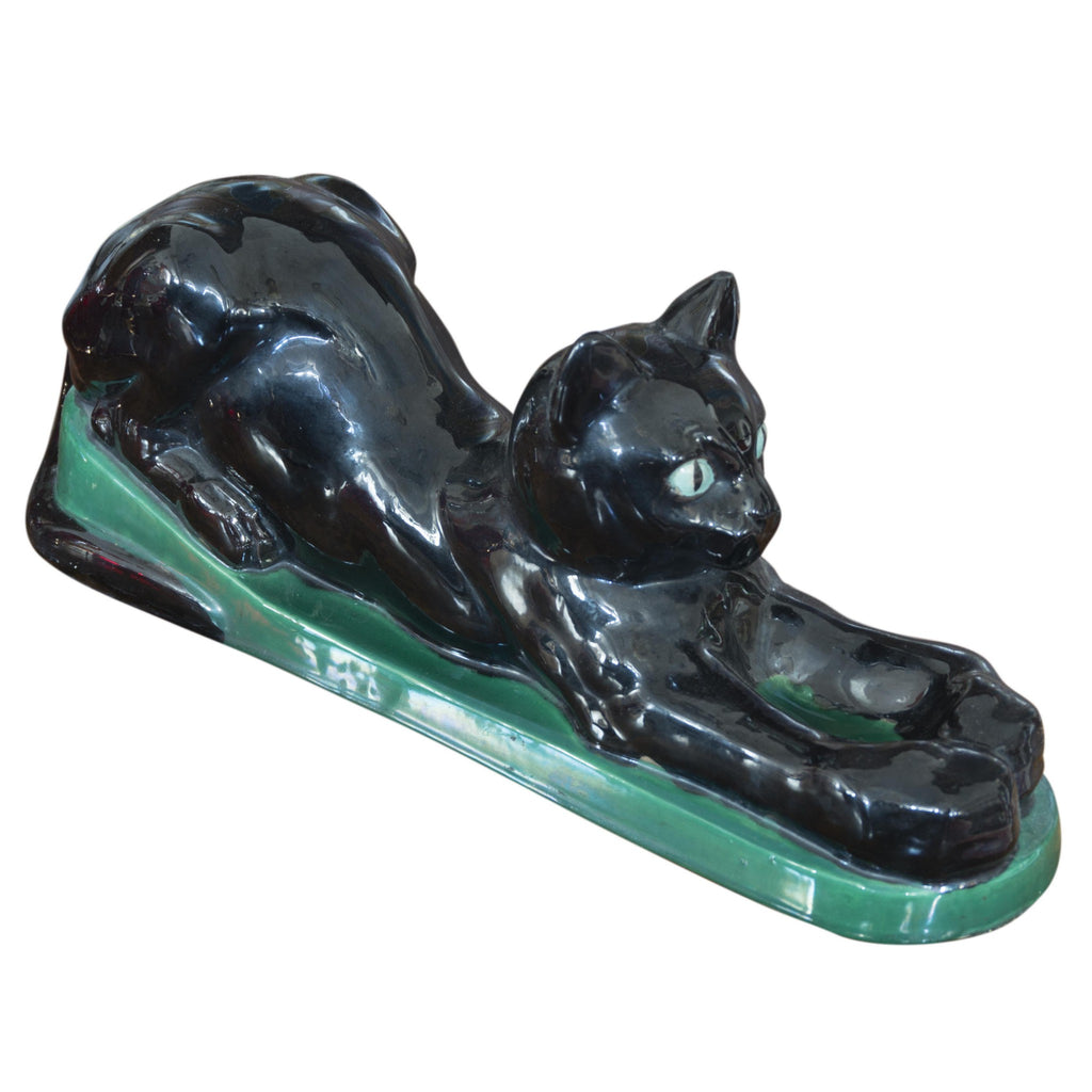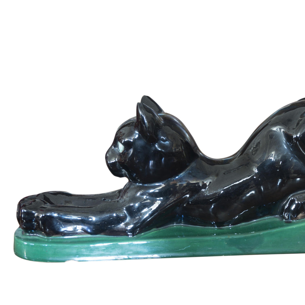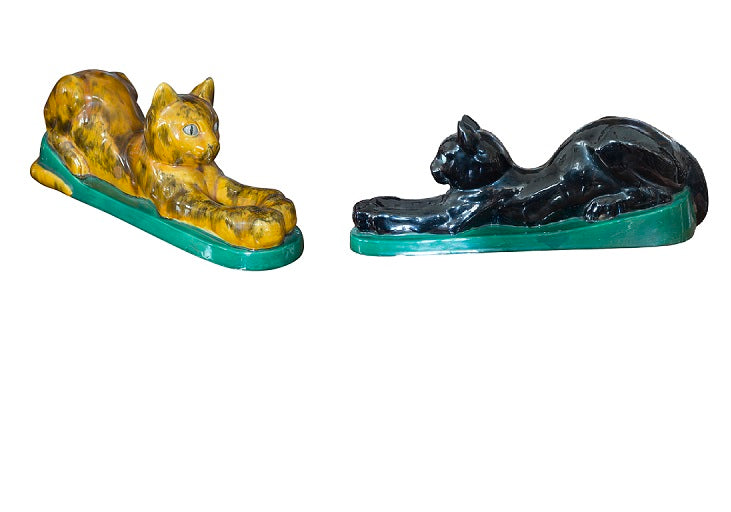 L. Mallener, sculptures en céramique grandeur nature de deux chats domestiques, Autriche vers 1918.