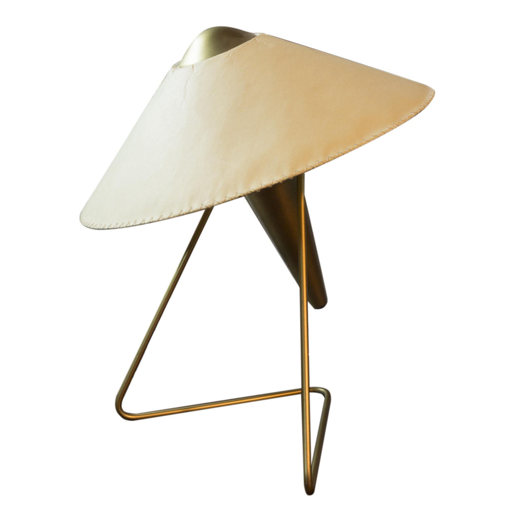 Lampe de bureau ou applique murale conçue par Helena Frantova et produite par Okolo en 1953, en Tchécoslovaquie. Ses élégants pieds inclinés en acier brossé soutiennent une lampe réglable avec abat-jour en parchemin.