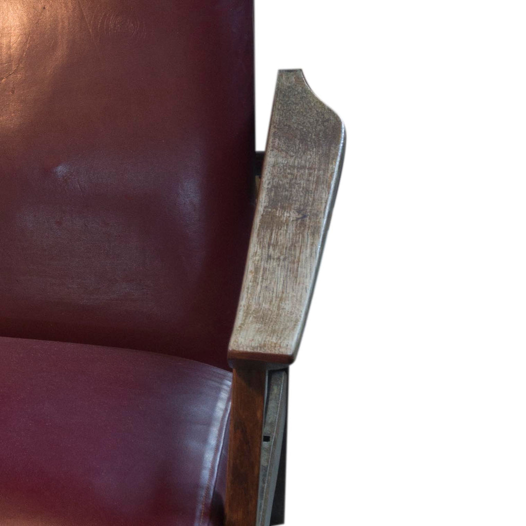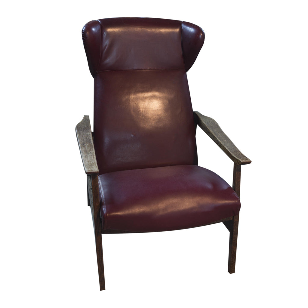 Les chaises sont recouvertes de cuir et présentent une belle combinaison de piètement et d'accoudoirs en chêne. Elles sont en bon état d'origine, avec une légère usure due à l'âge et à l'usage.