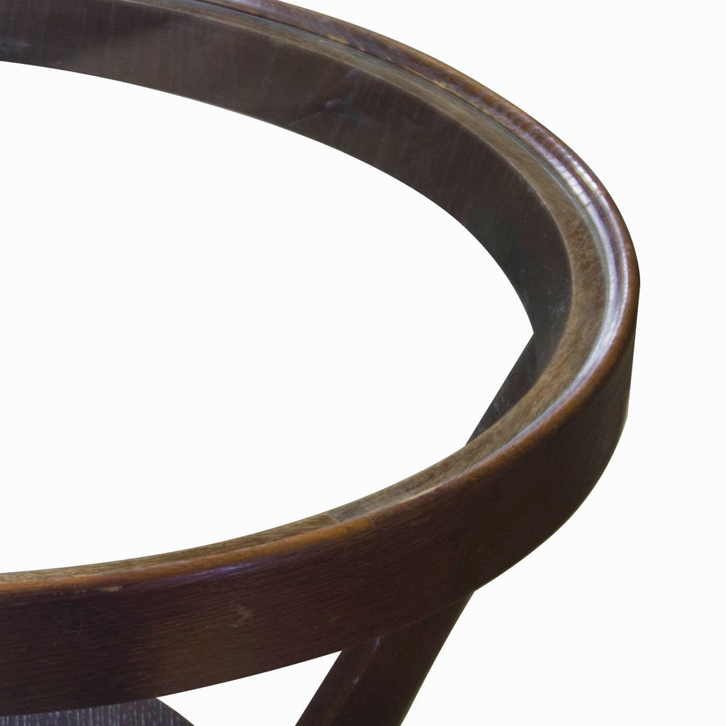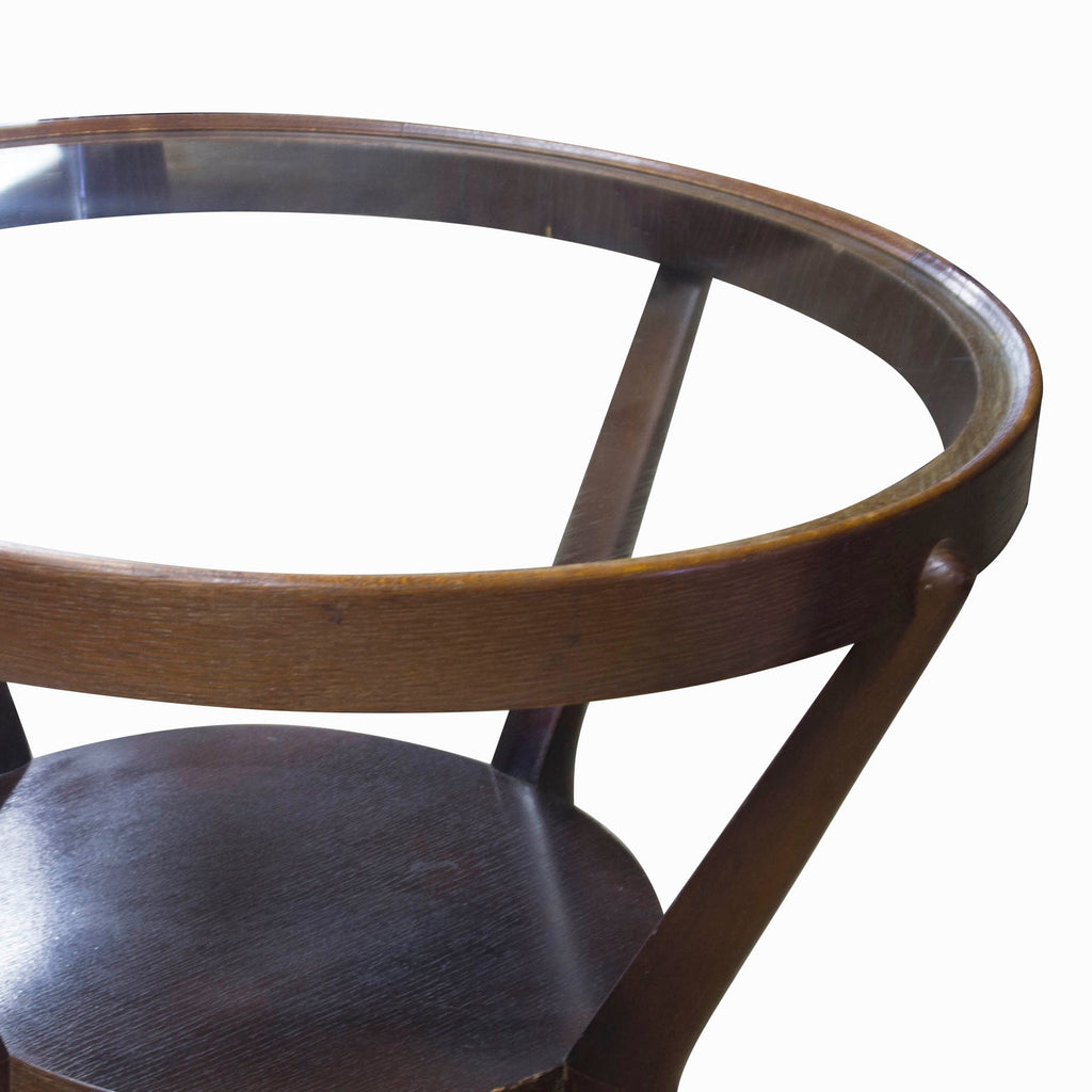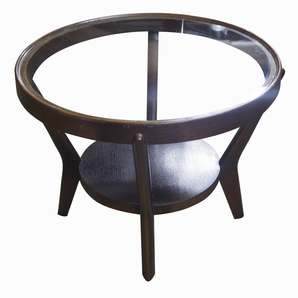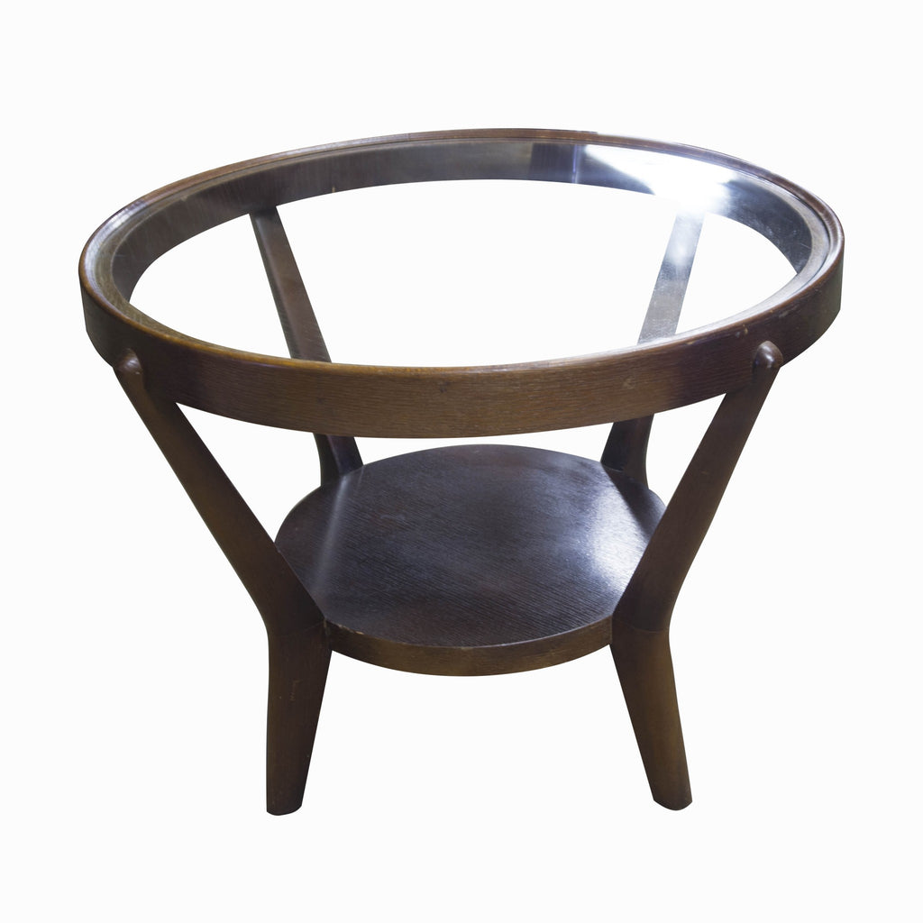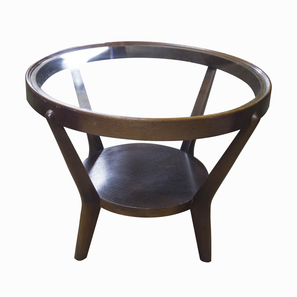 Table ronde vitrée conçue par les célèbres architectes Kropacek & Kozelka en 1944. Tchécoslovaquie. Peut servir de table basse ou d'appoint. Bon état. Chêne massif. Couleur claire. Excellent état vintage.