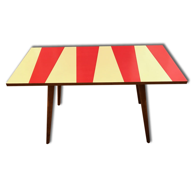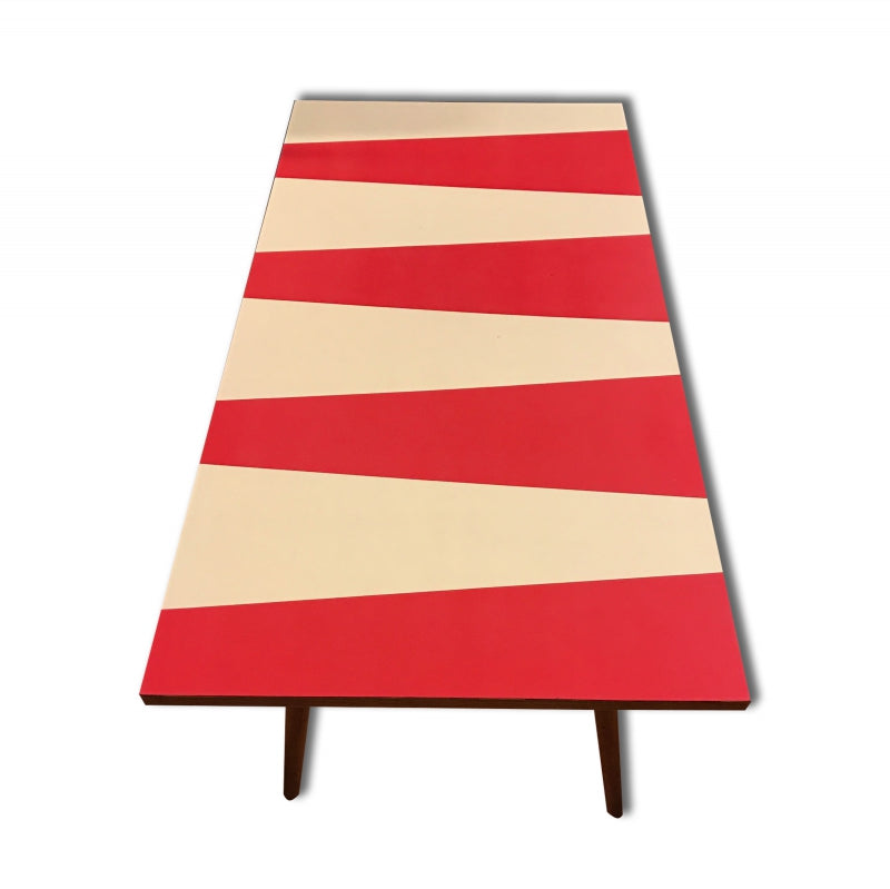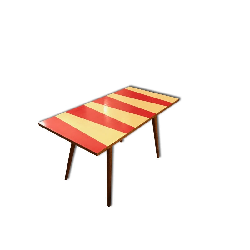 Table d'appoint ou table basse couleur milieu du siècle. Matériaux : formica, hêtre. Pièce rétro tendance. En très bon état vintage.