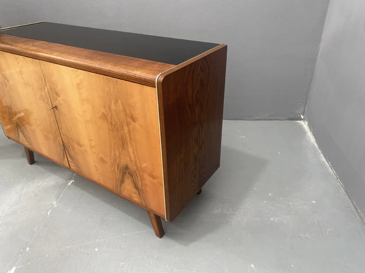Designed by Bohumil Landsman and Hubert Nepožitek in Czechoslovakia during the 1960s, this cabinet showcases the geometric balance and functional elegance of mid-century modern design.