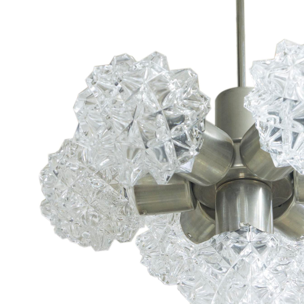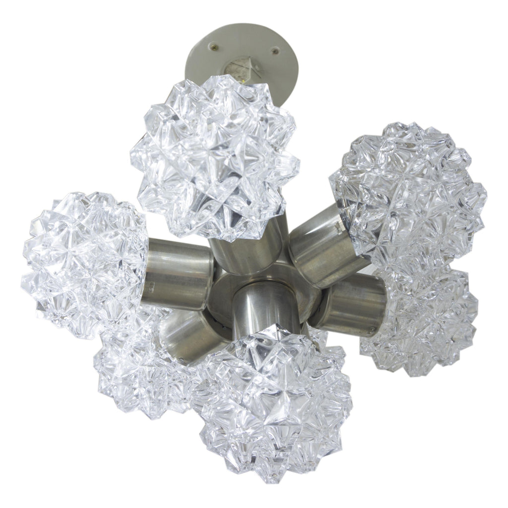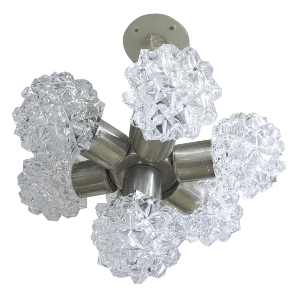 Lustre suspendu très élégant avec six abat-jour en verre, années 1960