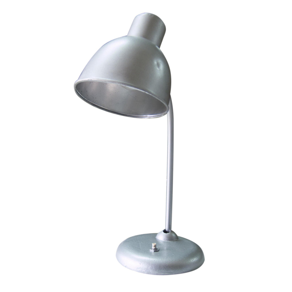 Lampe de bureau réglable, milieu du siècle, Europe centrale. Chrome, émail et plastique. Restauration complète. Câblage neuf. Excellent état.