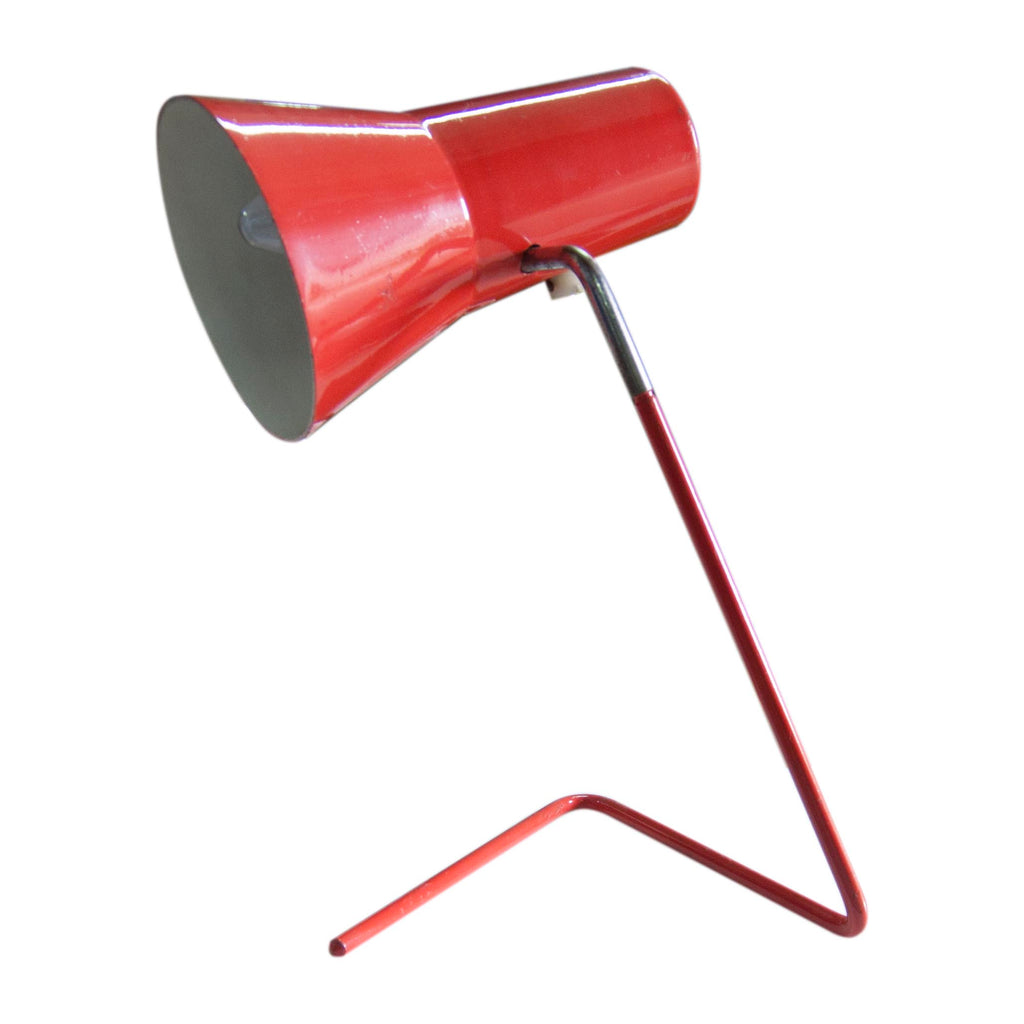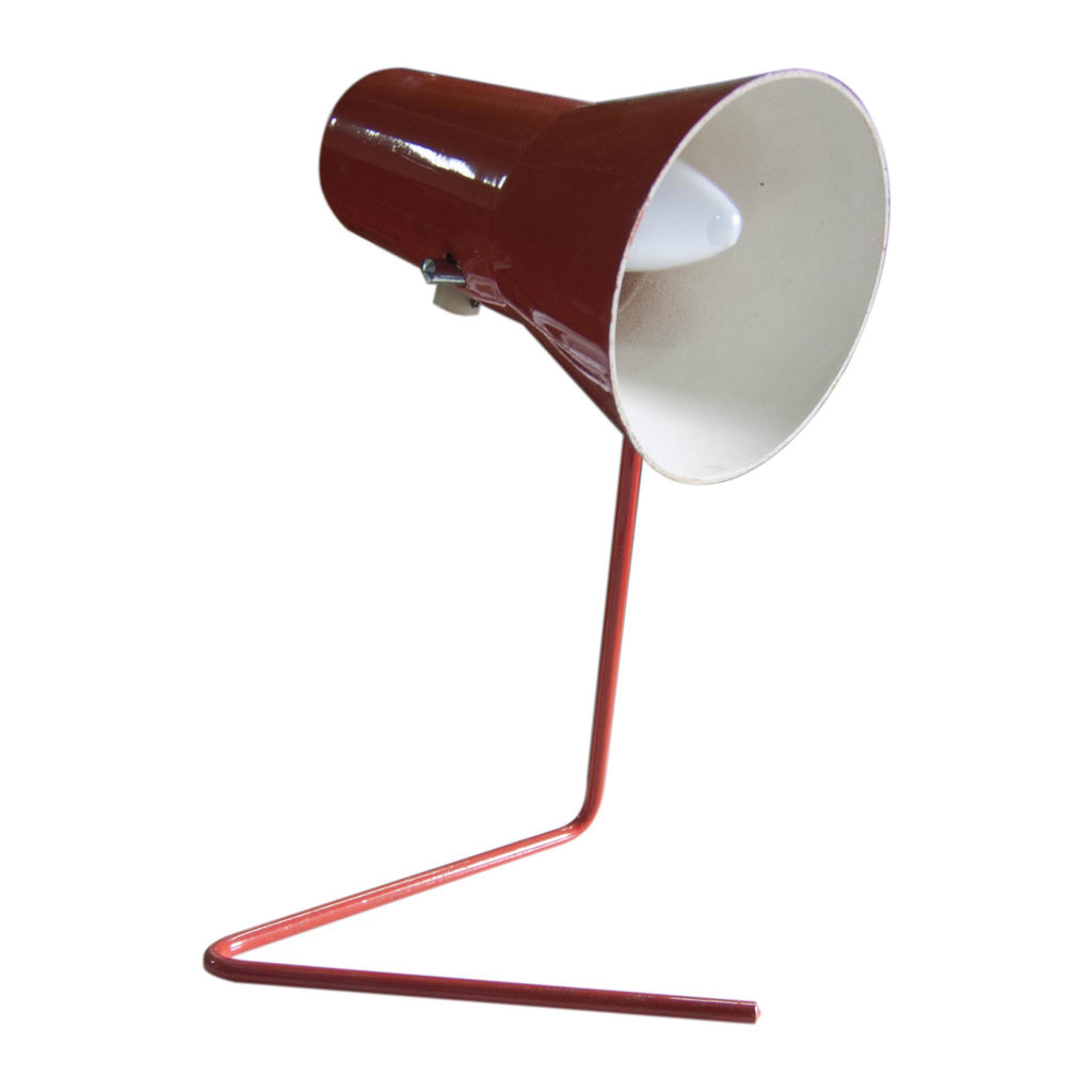 Lampe tchèque moderniste ajustable par Josef Hurka pour Napako, estampillée « Expo 58 de Bruxelles ». Métal laqué rouge. Électricité neuve, fil plastique, ampoule standard à culot E27.