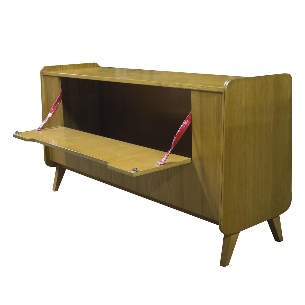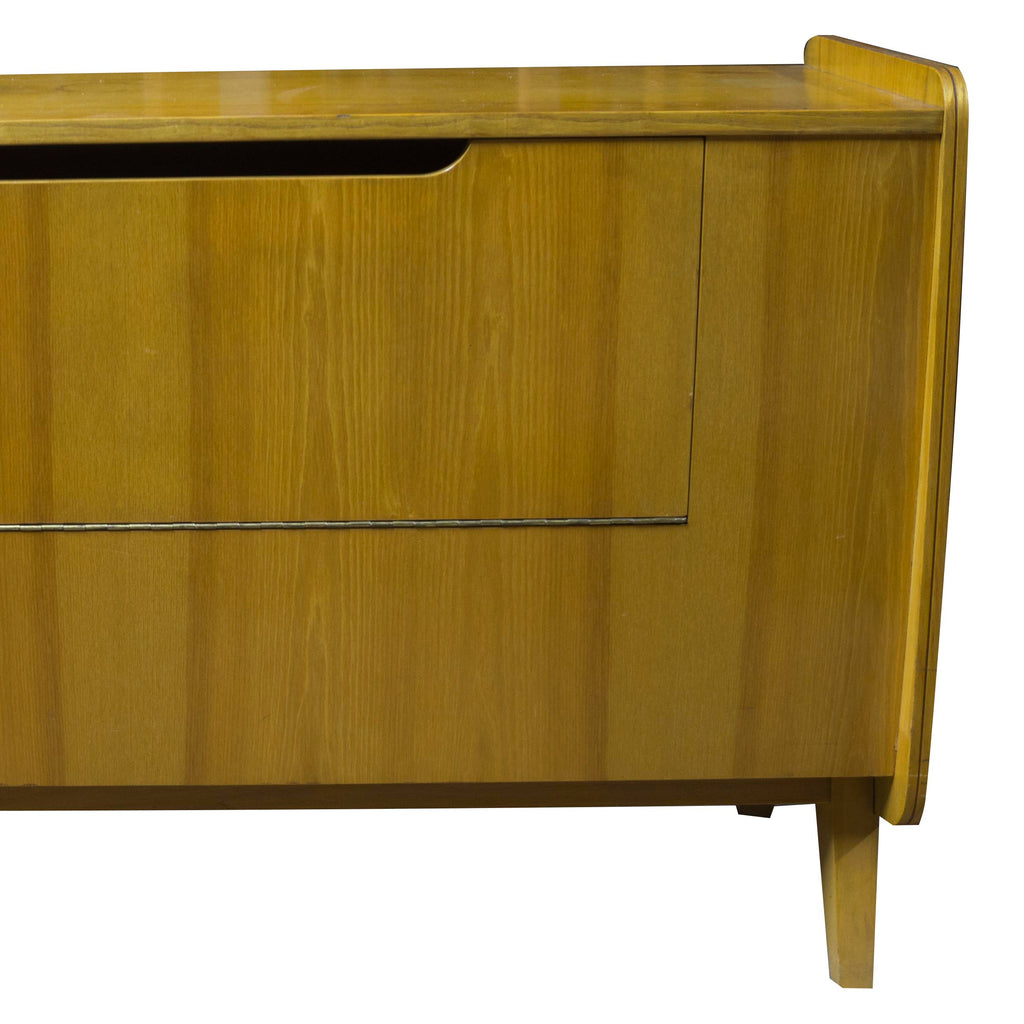 Commode vintage des années 60. Fabriquée en Tchécoslovaquie. En très bon état. Combinant hêtre, frêne et contreplaqué. Légères abrasions et rayures dues à l'âge et à l'usage.