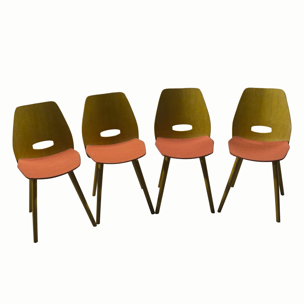 Ensemble de quatre chaises de salle à manger vintage, F. Jirak, Tatra nabytok