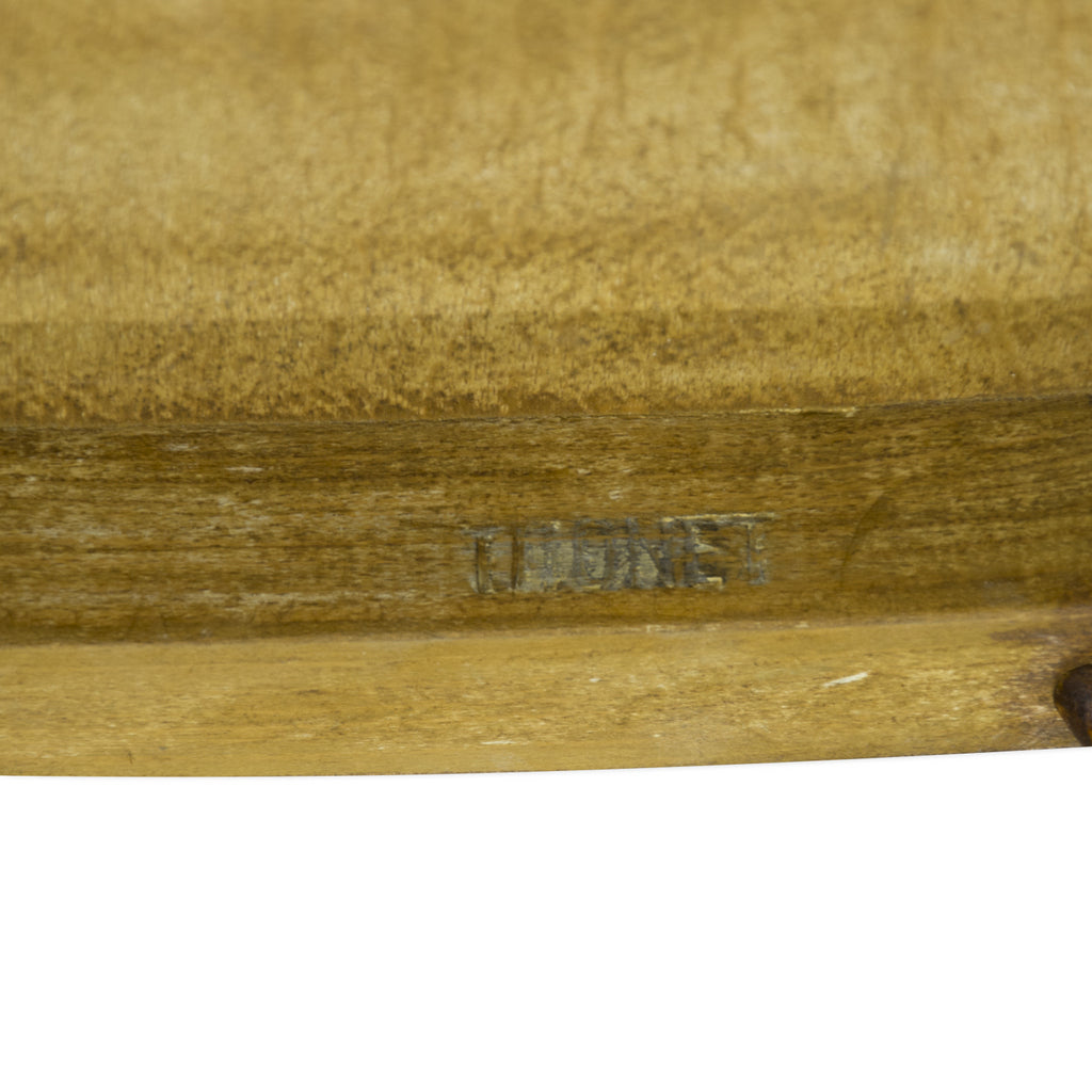 Rare fauteuil Thonet n° B 93, fabriqué en 1907 d'après un projet de Gustav Siegel datant de 1905, pour le sanatorium de Purkersdorf, en Autriche. Signature Thonet en relief à l'intérieur du cadre de l'assise. En très bon état, partiellement restauré avec finition gomme-laque. Construction en hêtre et bois courbé.