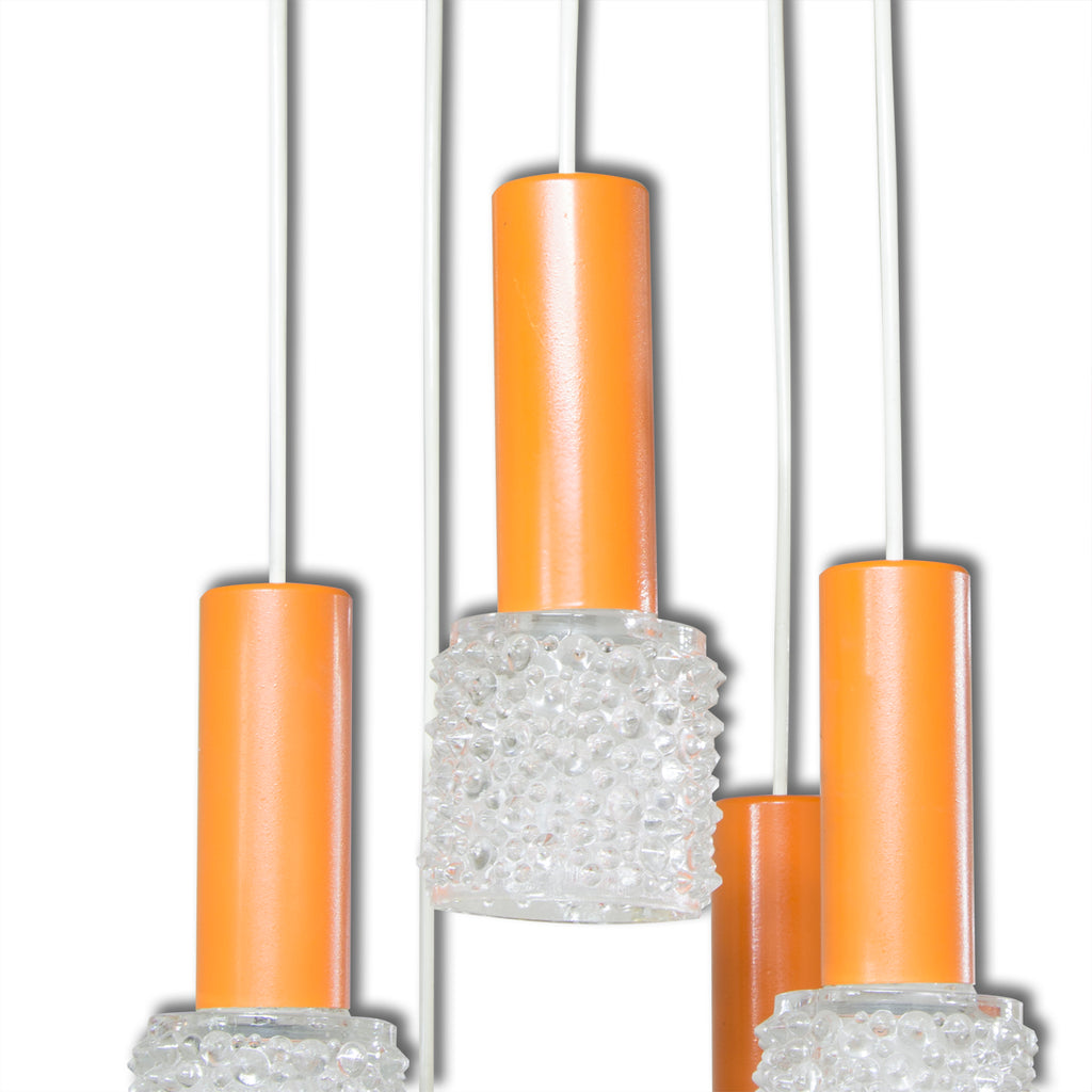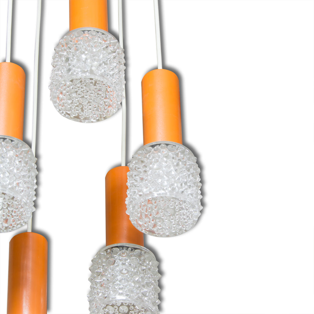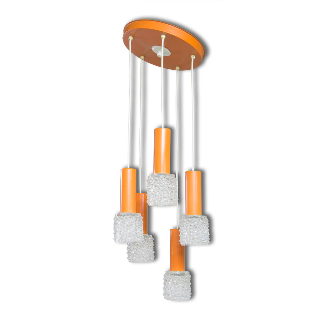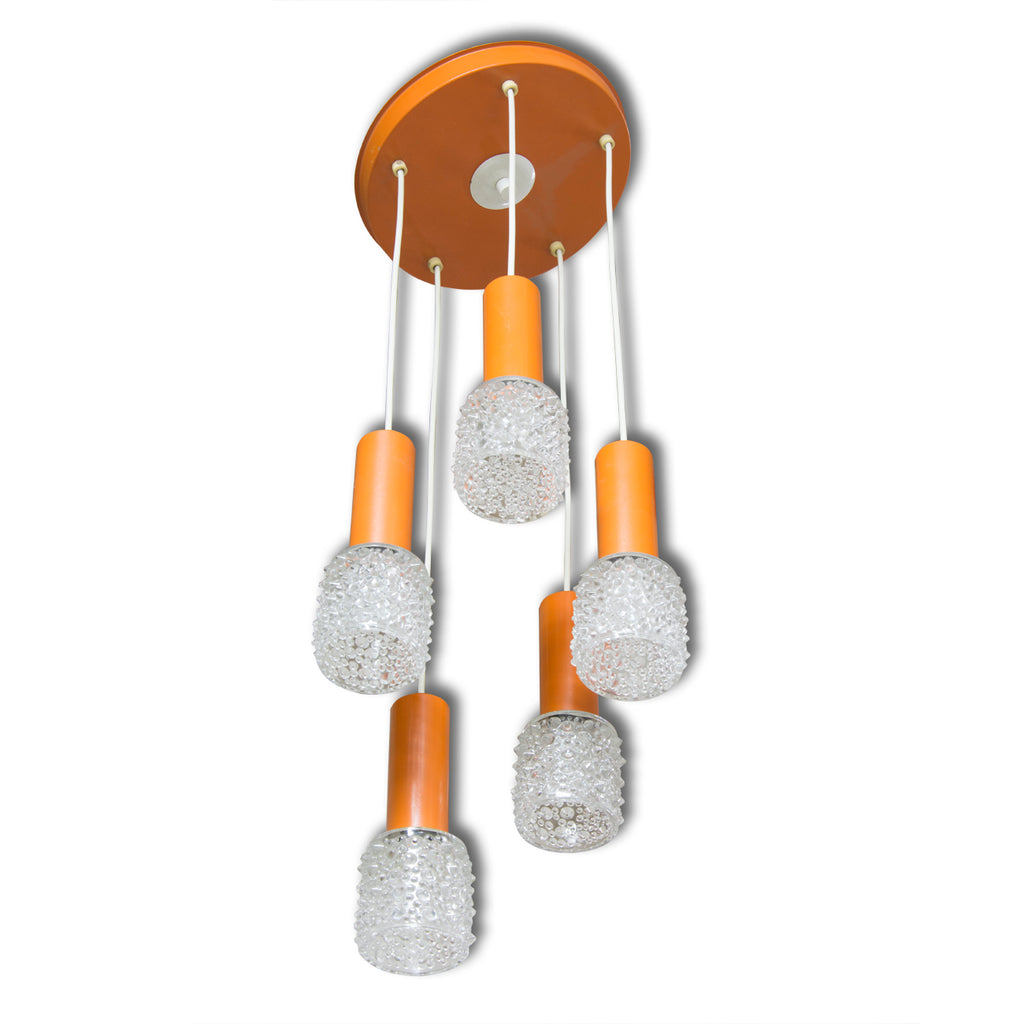 Lustre suspendu vintage avec cinq abat-jour en verre, Pokrok ¦ilina, Tchécoslovaquie