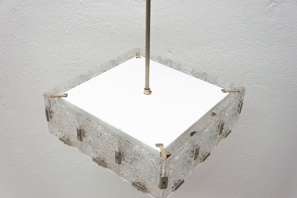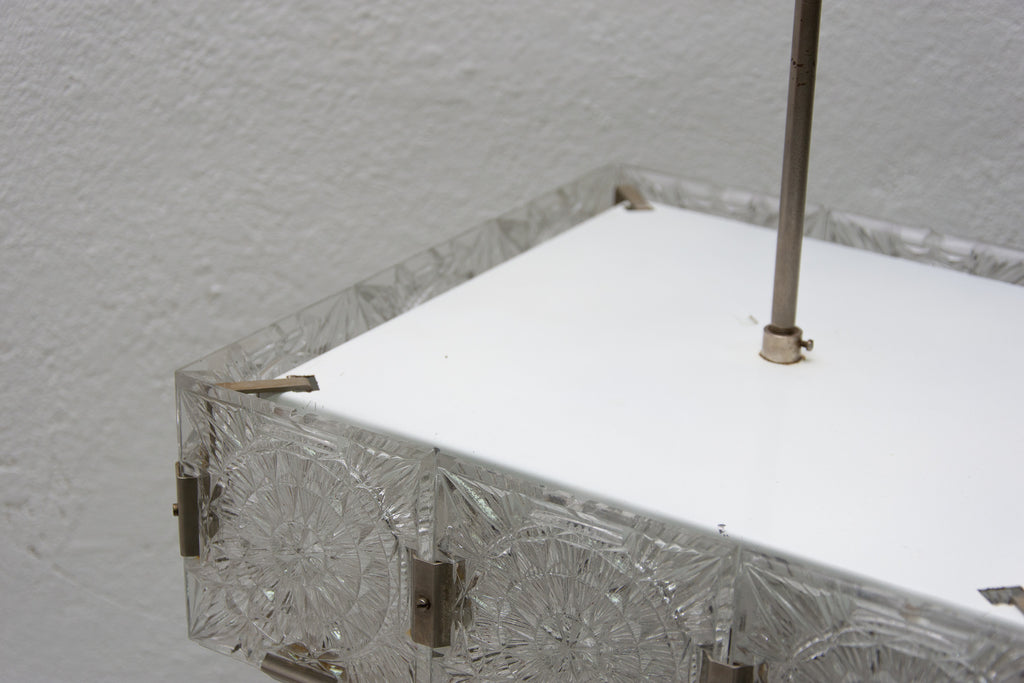 Suspension vintage en verre et acier chromé par Kamenickě ćenov, années 1970