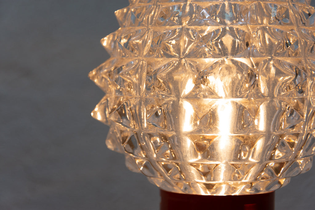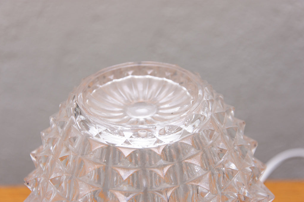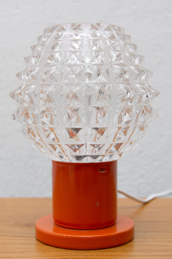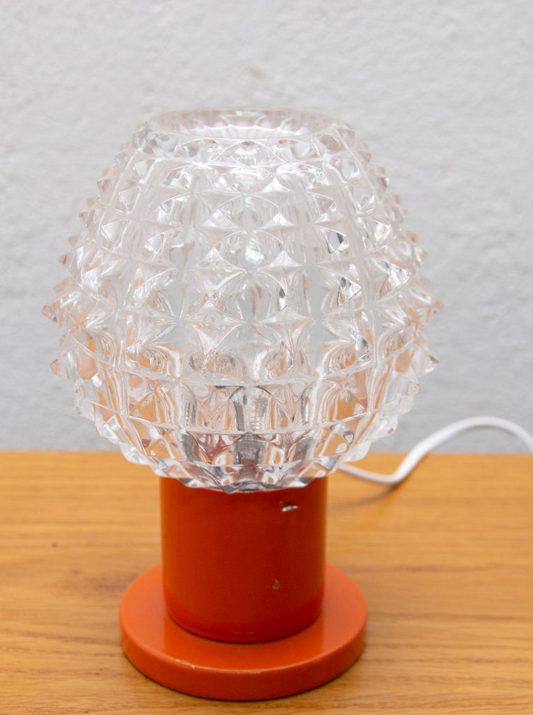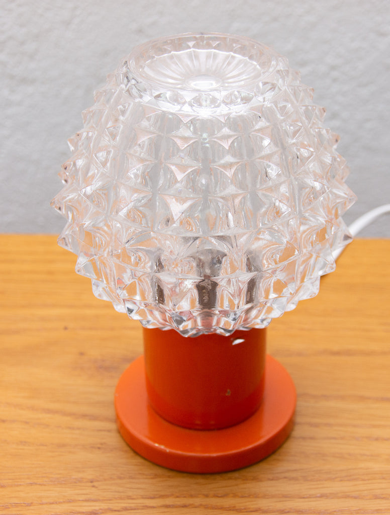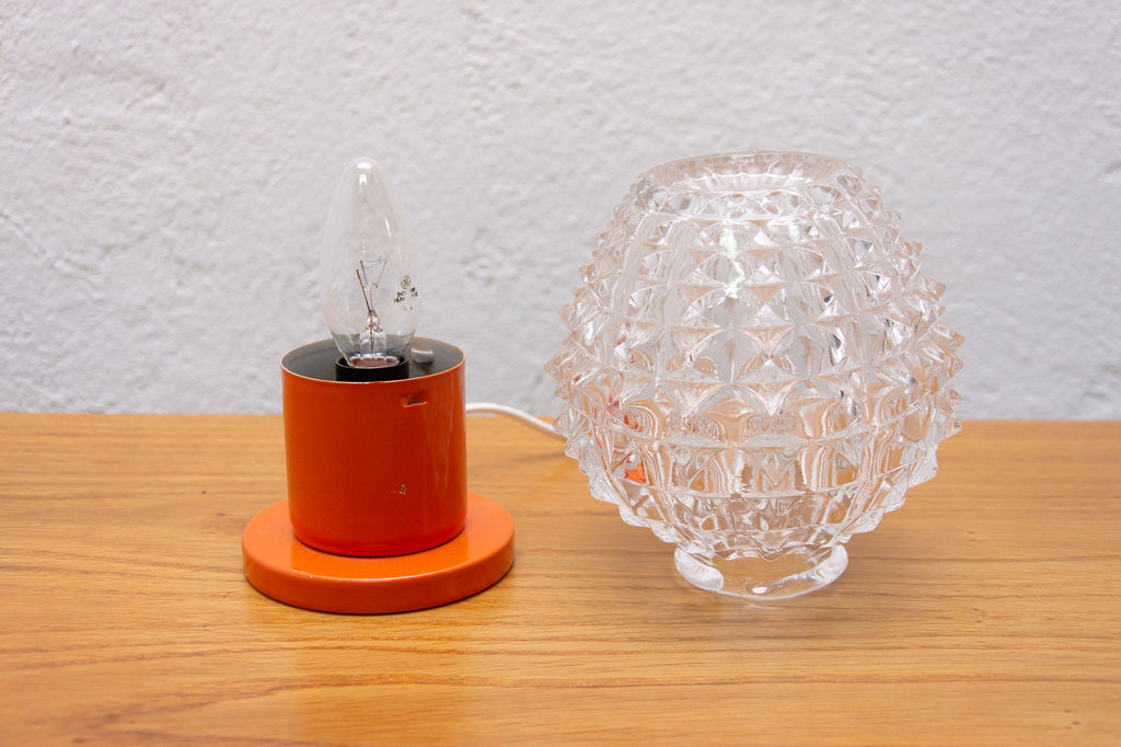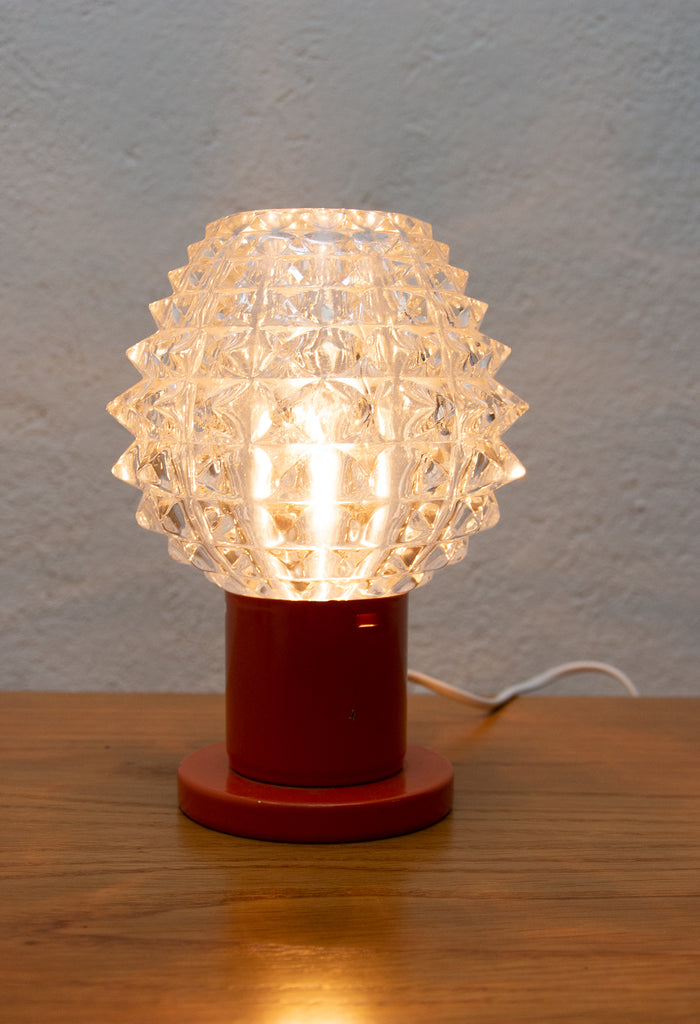 Lampe de table vintage du milieu du siècle, datant des années 1960. Fabriquée par Kamenicky Senov. Entièrement fonctionnelle. Très bel état de conservation. Verre taillé, pied en laiton. Une ampoule E-14. 250 V.