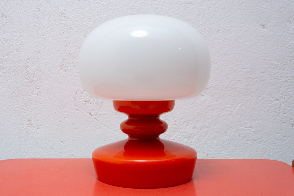 Vintage glass desk lamp associated with “Brussels period” and world-renowned EXPO58. Designed by Stepan Tabera for OPP Jihlava, Czechoslovakia. The lamp is made of glass. This lamp was made in the second half of the 20th century.