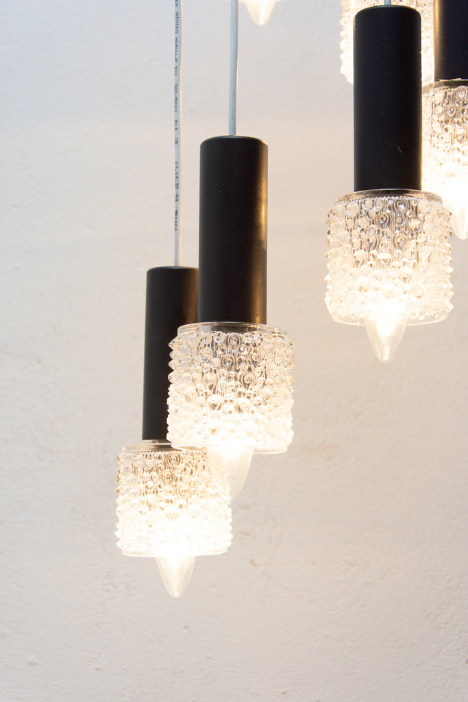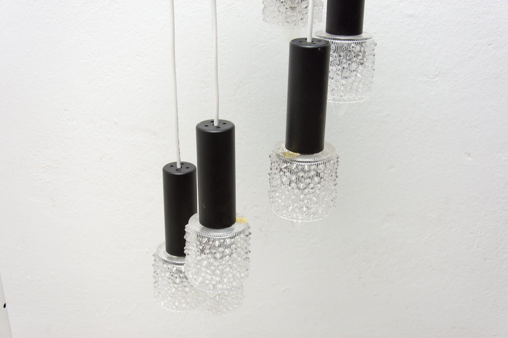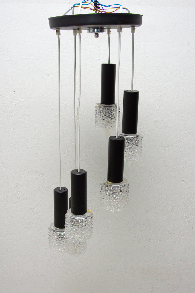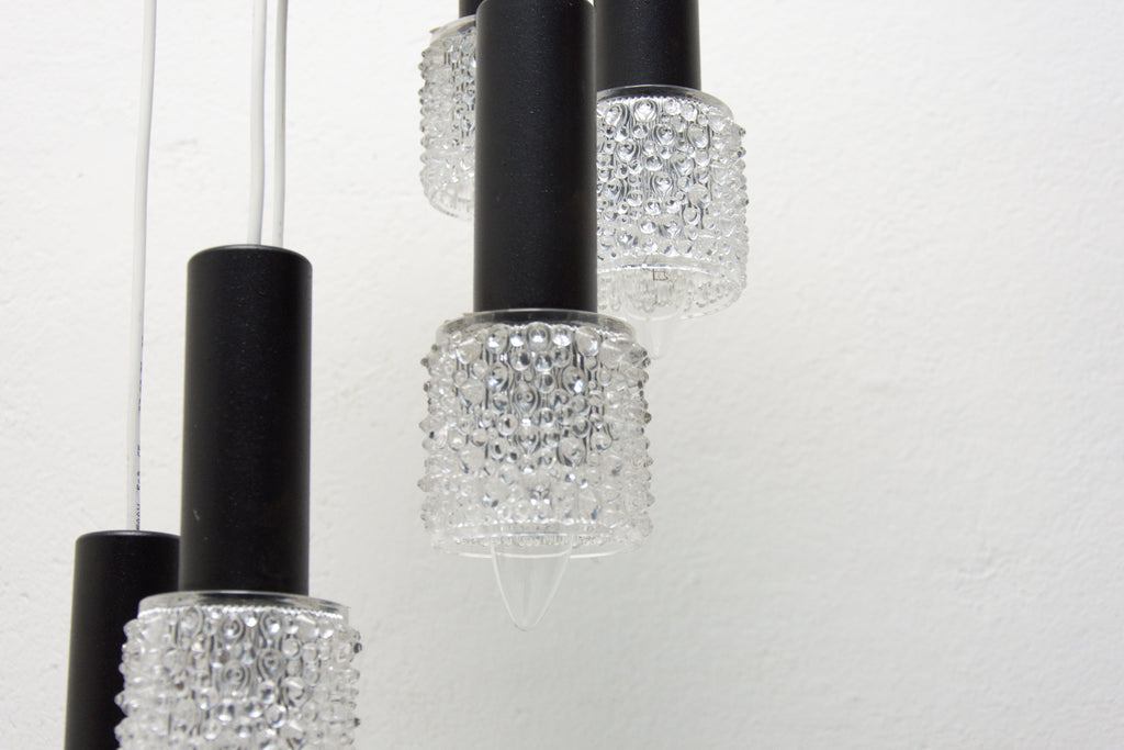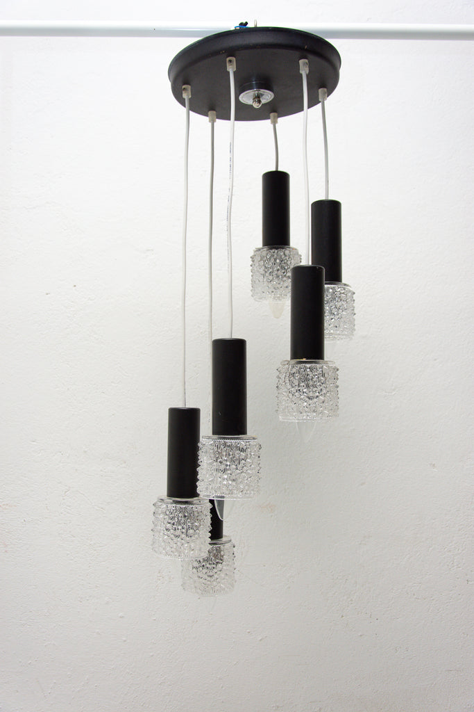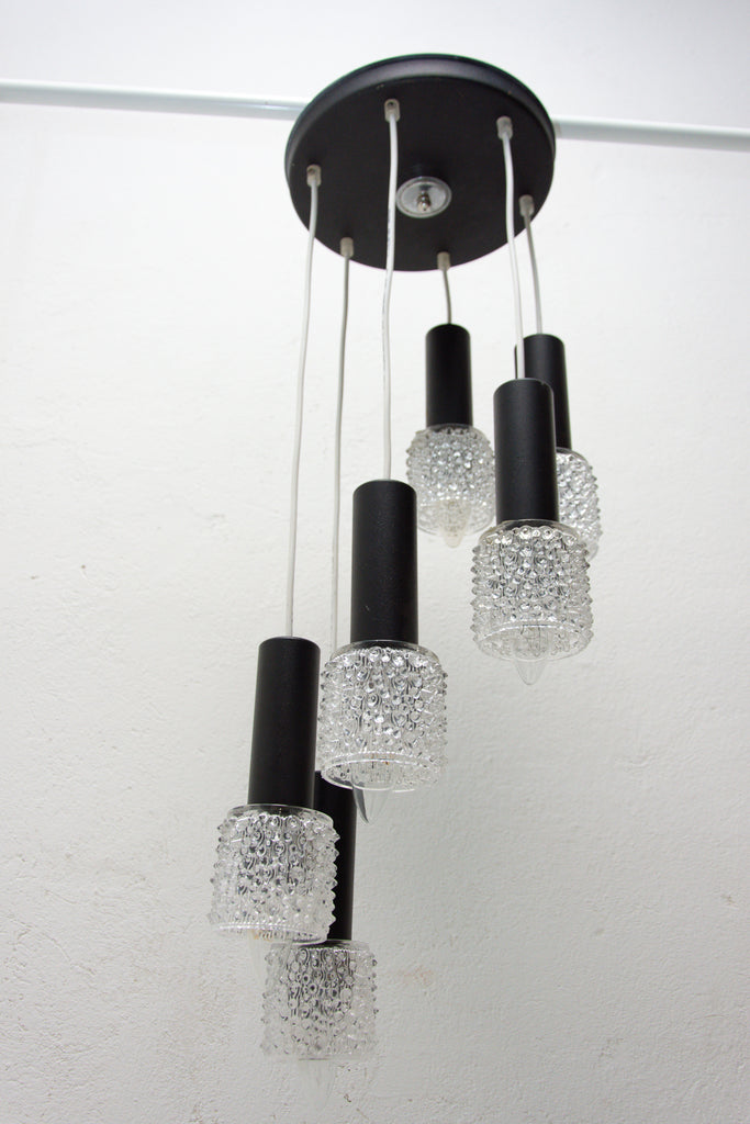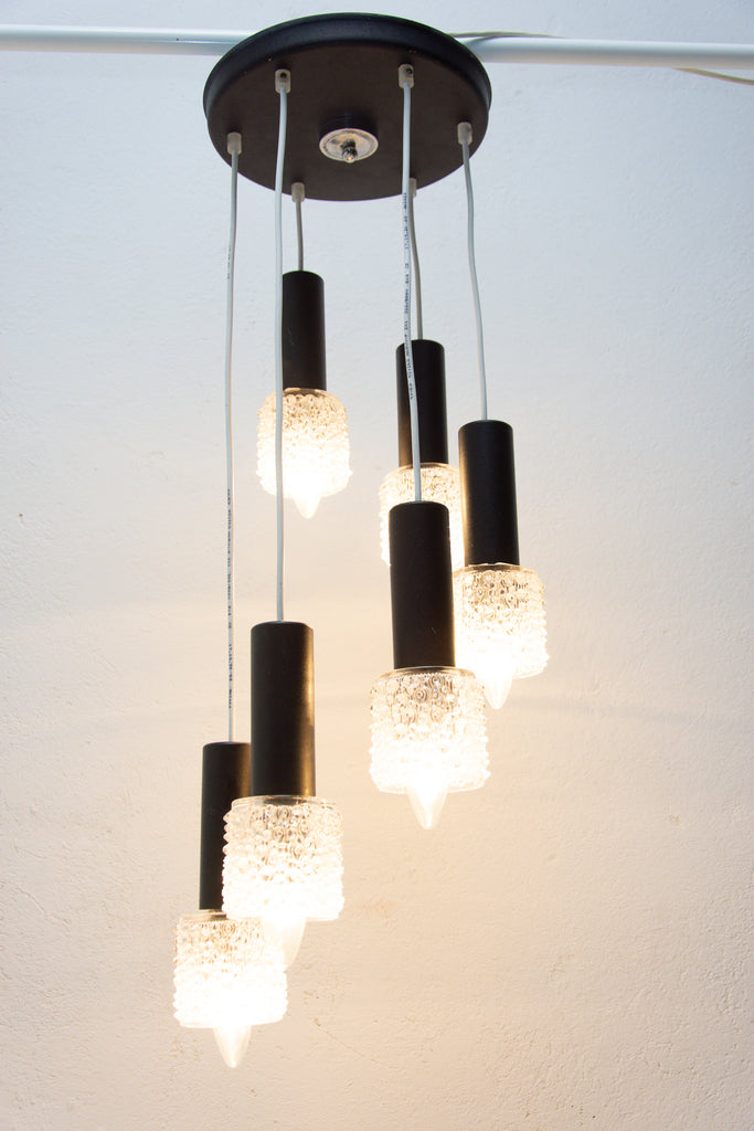 Lustre suspendu vintage avec six abat-jour en verre, Instala DŘźˇn, Tchécoslovaquie