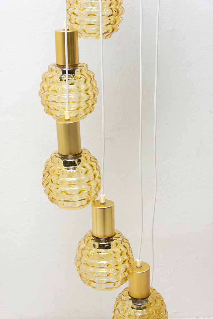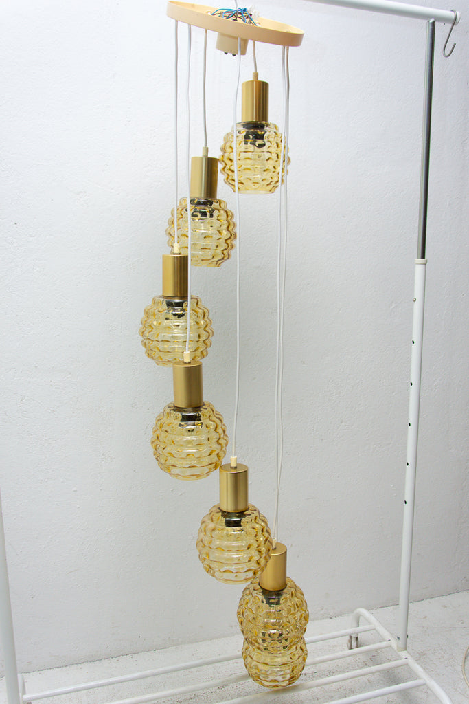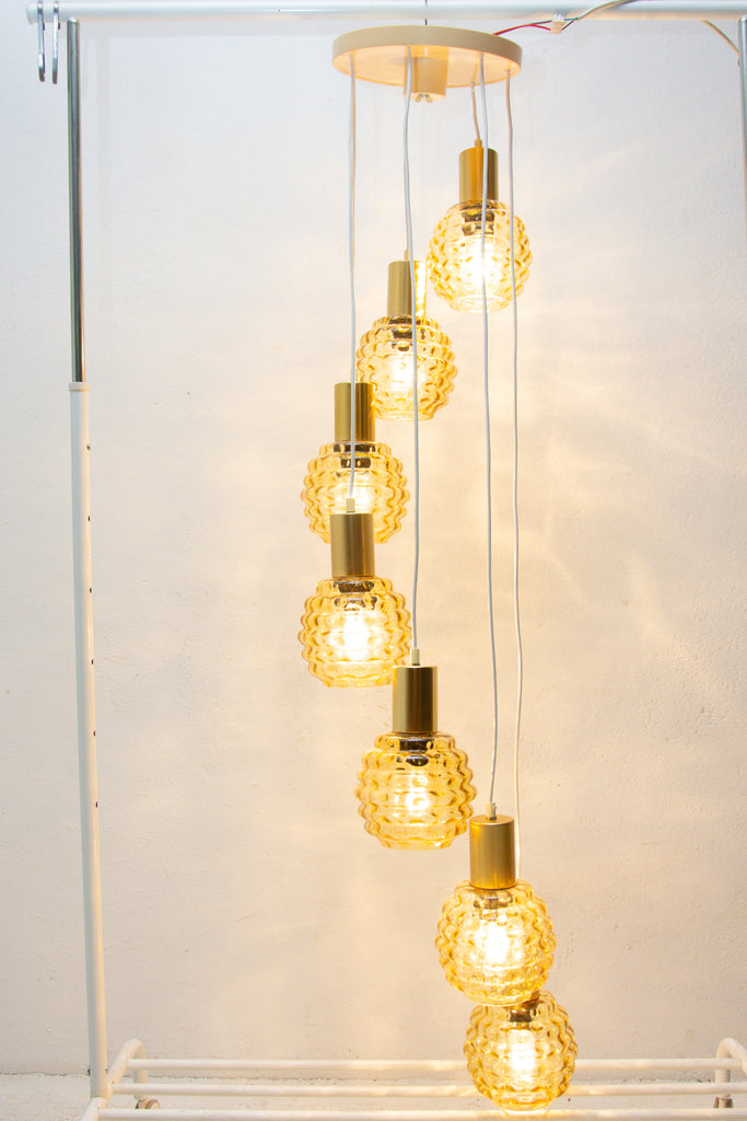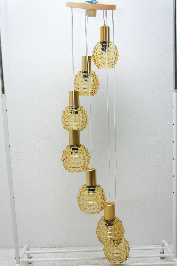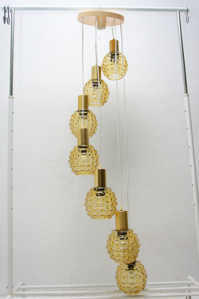 Lustre suspendu vintage avec sept abat-jour en verre, Pokrok ¦ilina, Tchécoslovaquie