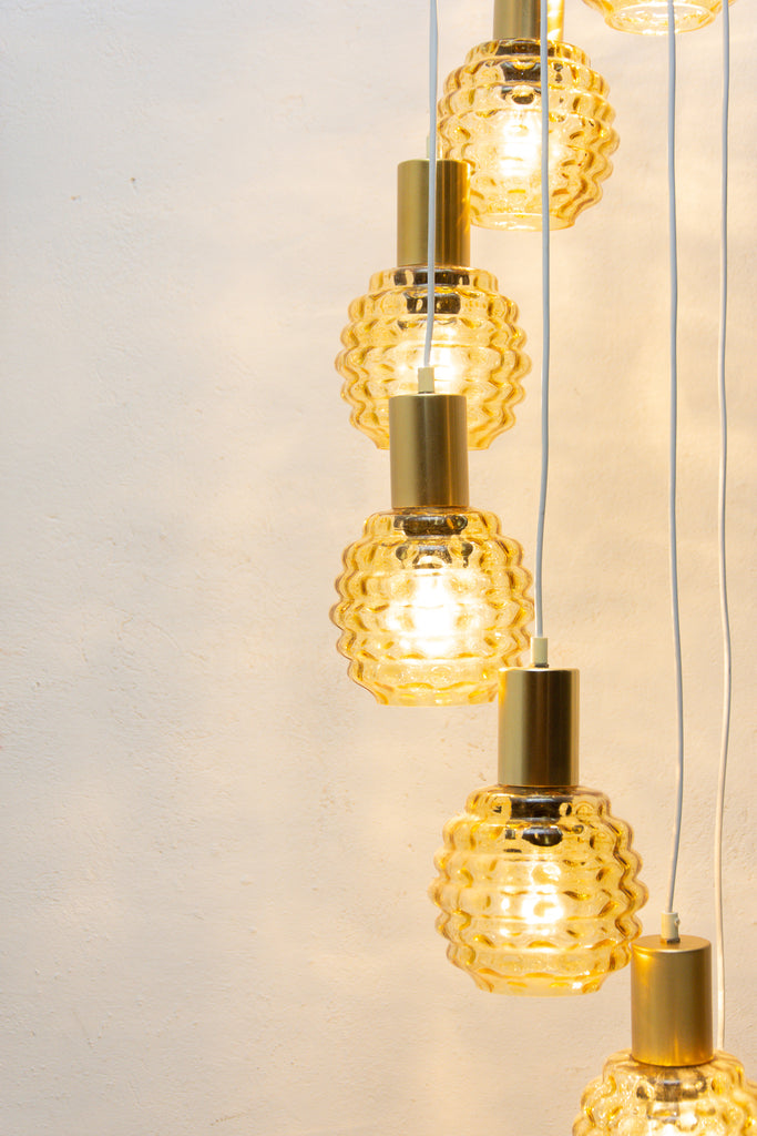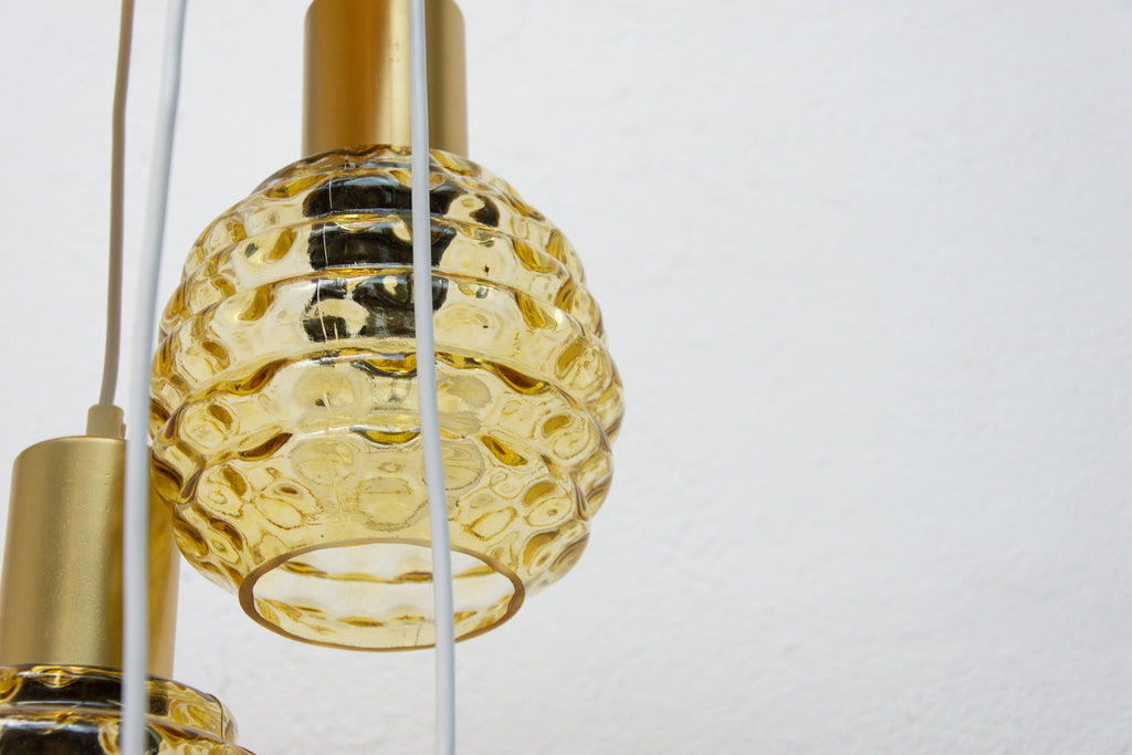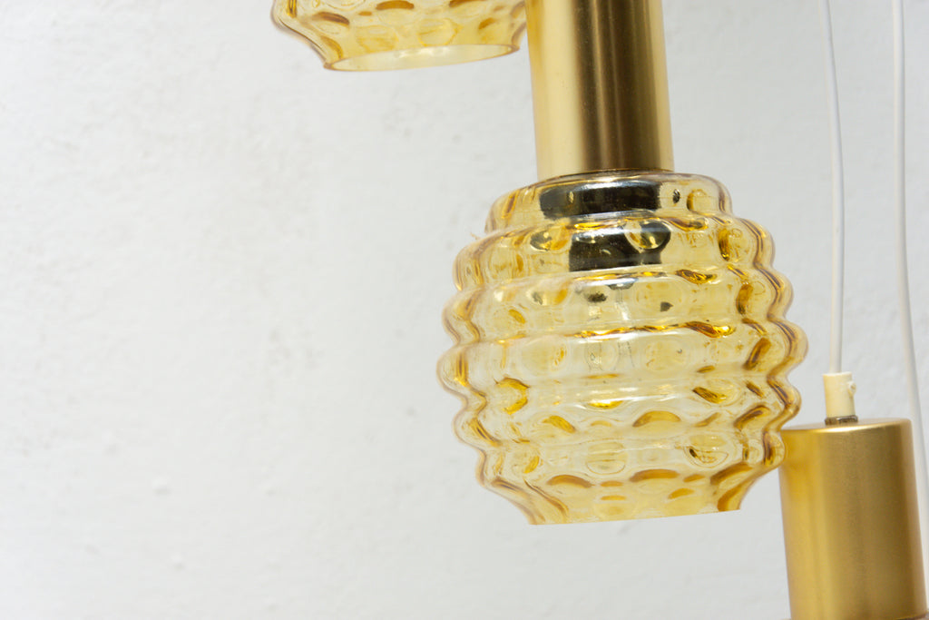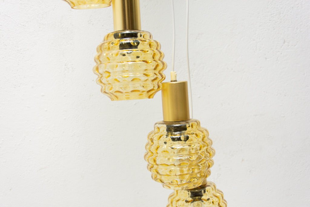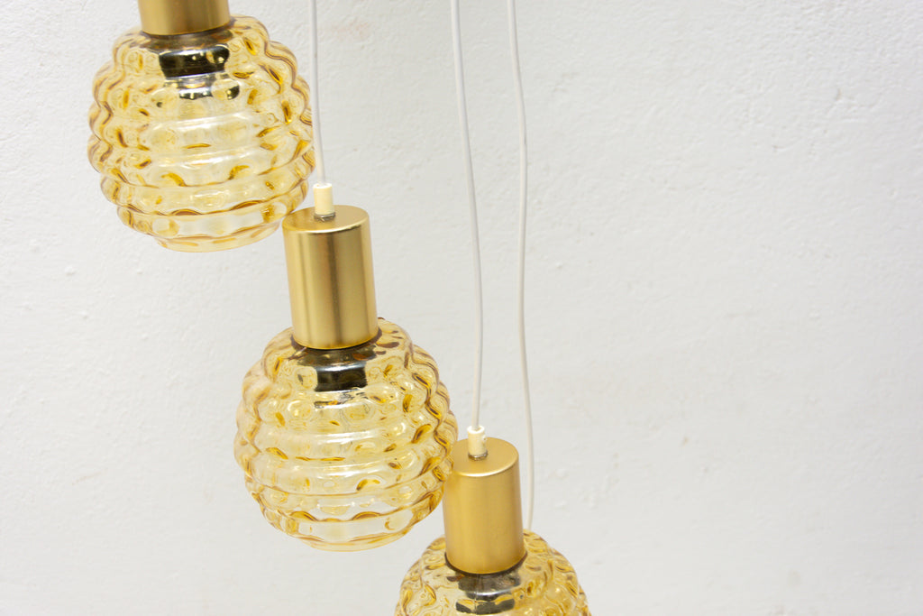 Lustre suspendu vintage avec sept abat-jour en verre, Pokrok ¦ilina, Tchécoslovaquie