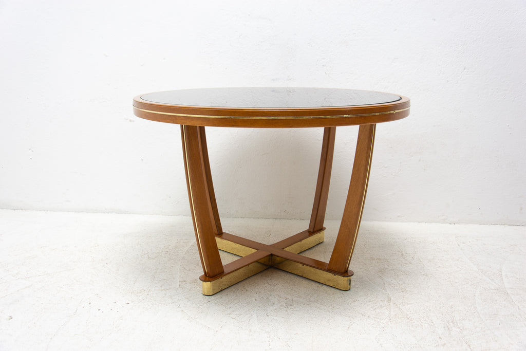 Fabriqué en bois de hêtre, laiton, verre noir sur le dessus.