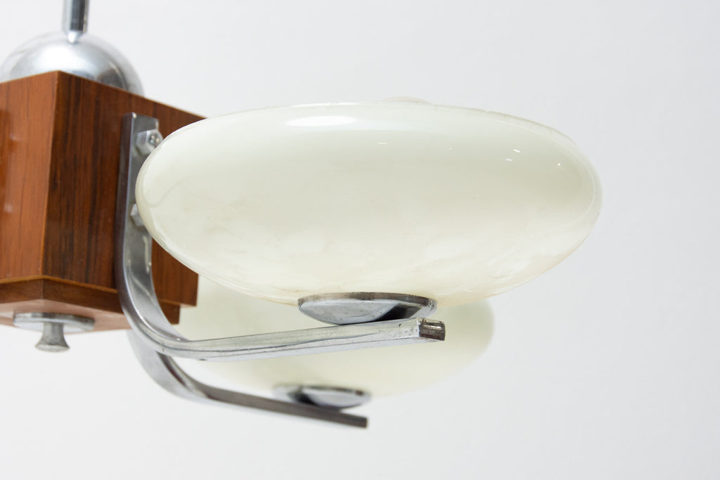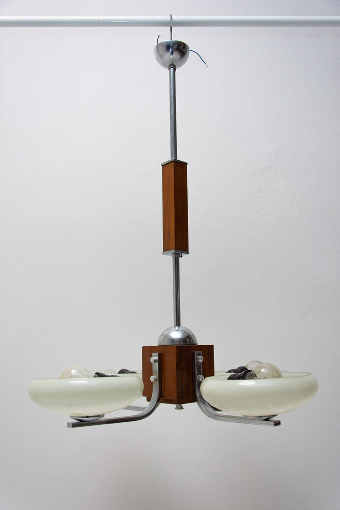 Lustre suspendu ART DÉCO en chrome et bois, vers 1930, Bohême