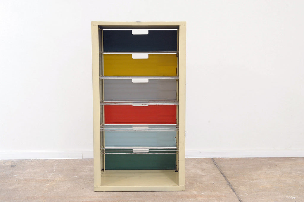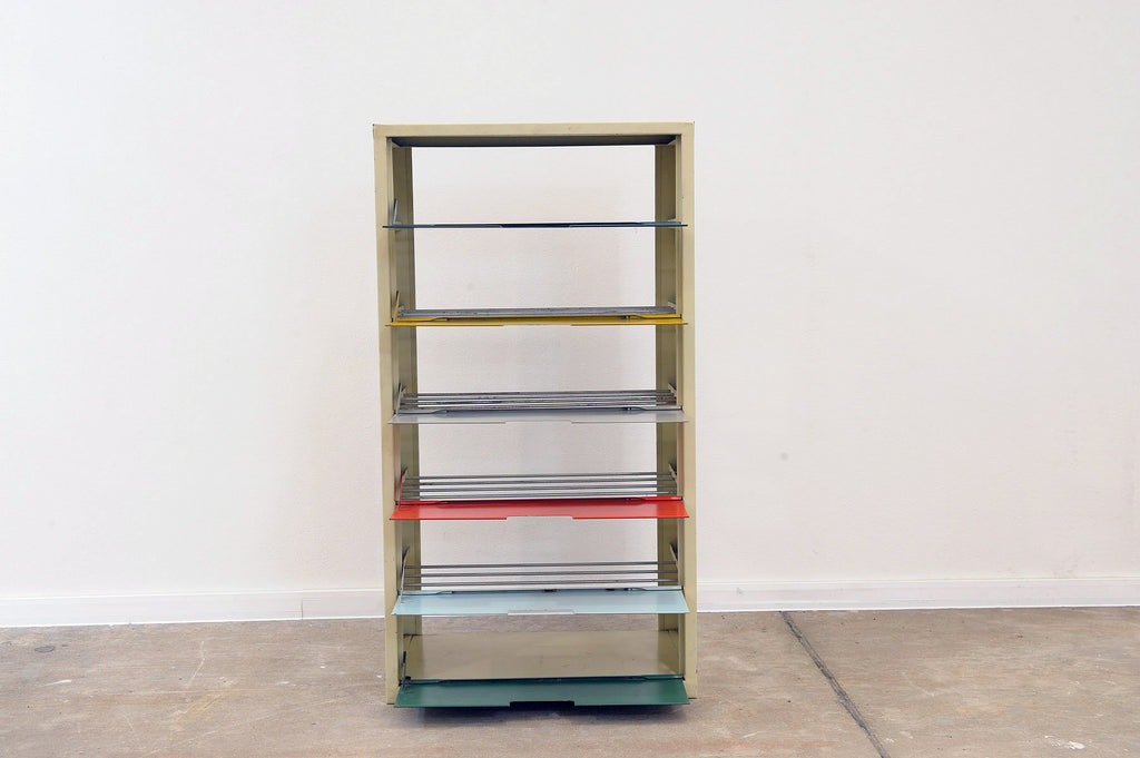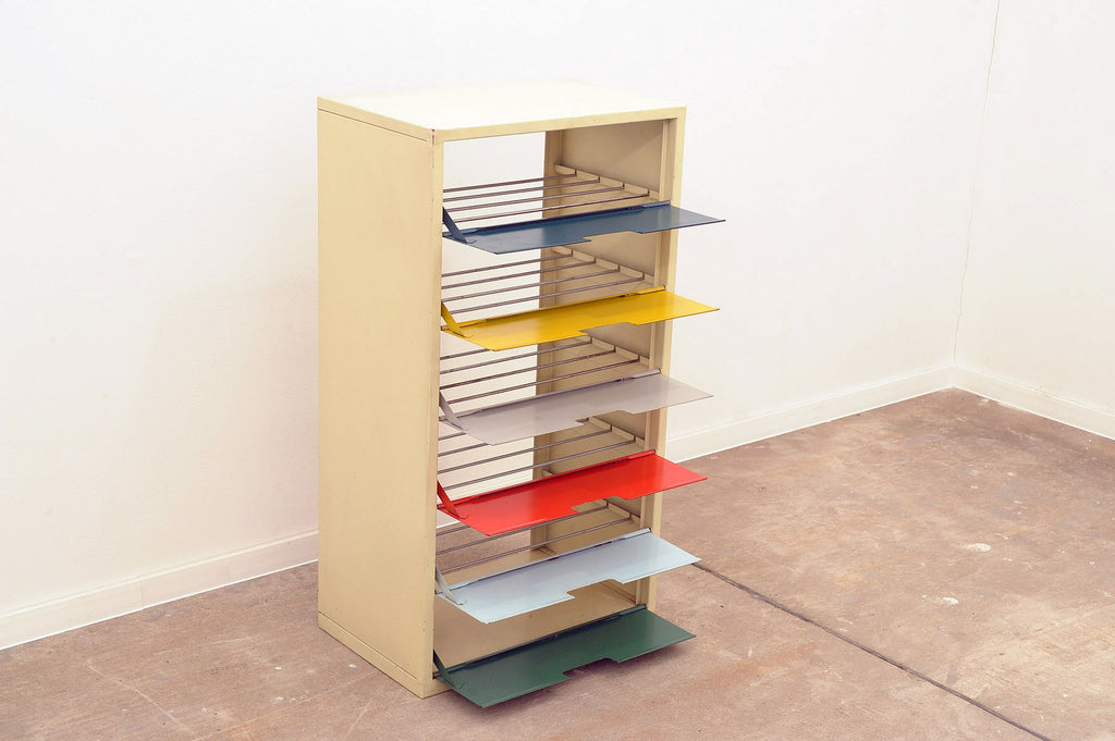 Étagère à chaussures en tôle colorée du milieu du siècle, bloc de l'Est, années 1960