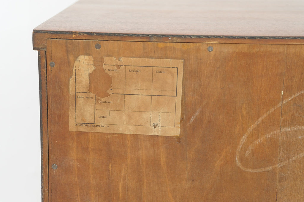 Il faisait partie d'un ensemble de chambre à coucher complet de la maison UP Závody. Il a été fabriqué en ex-Tchécoslovaquie en 1952.