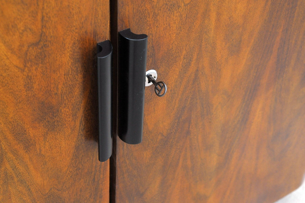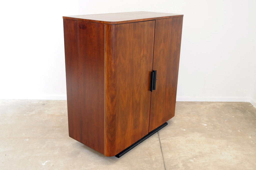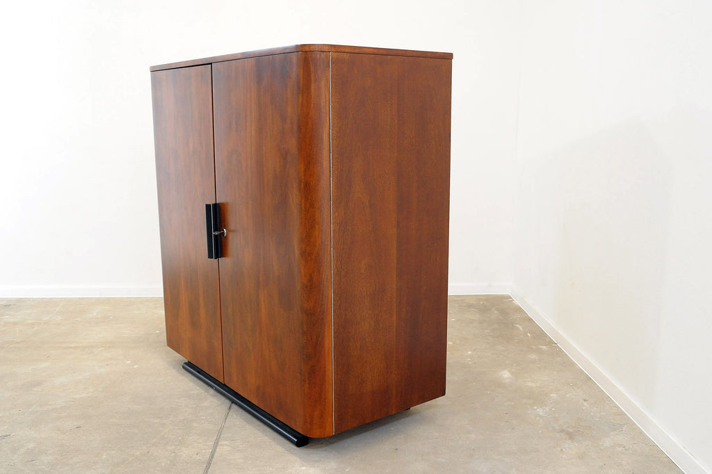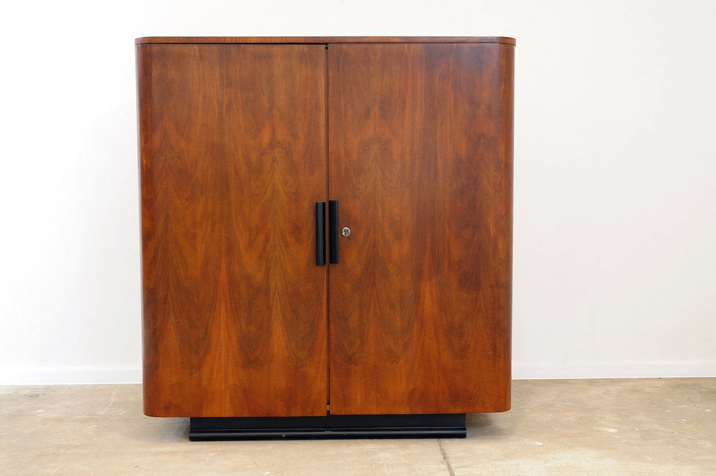 Cette armoire en noyer du milieu du siècle a été conçue par Jindřich Halabala pour UP Závody.