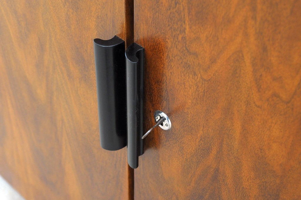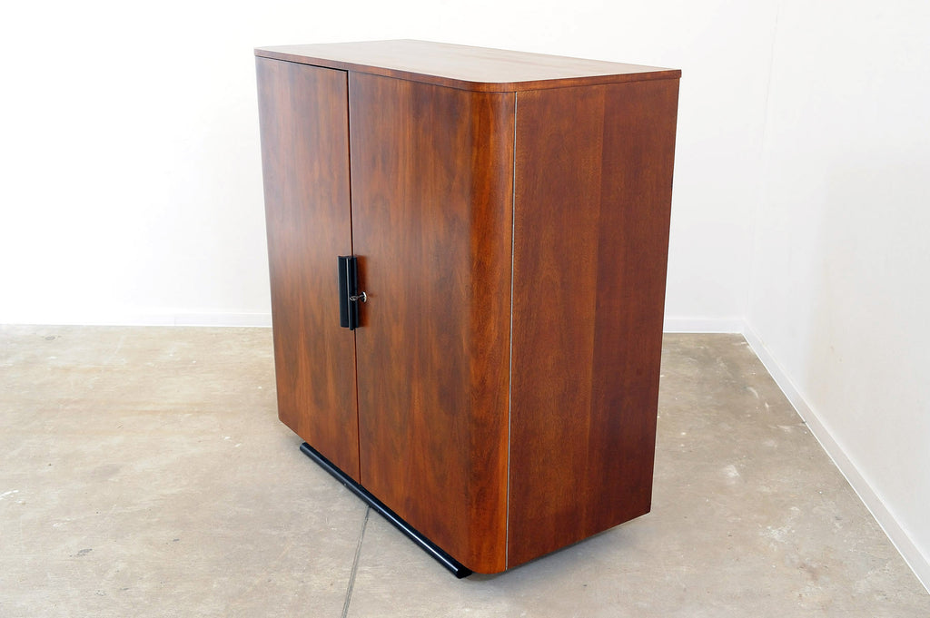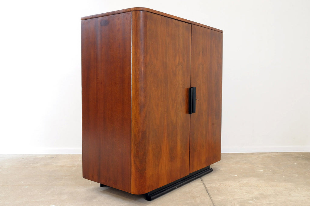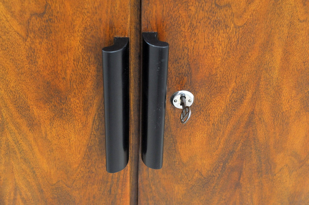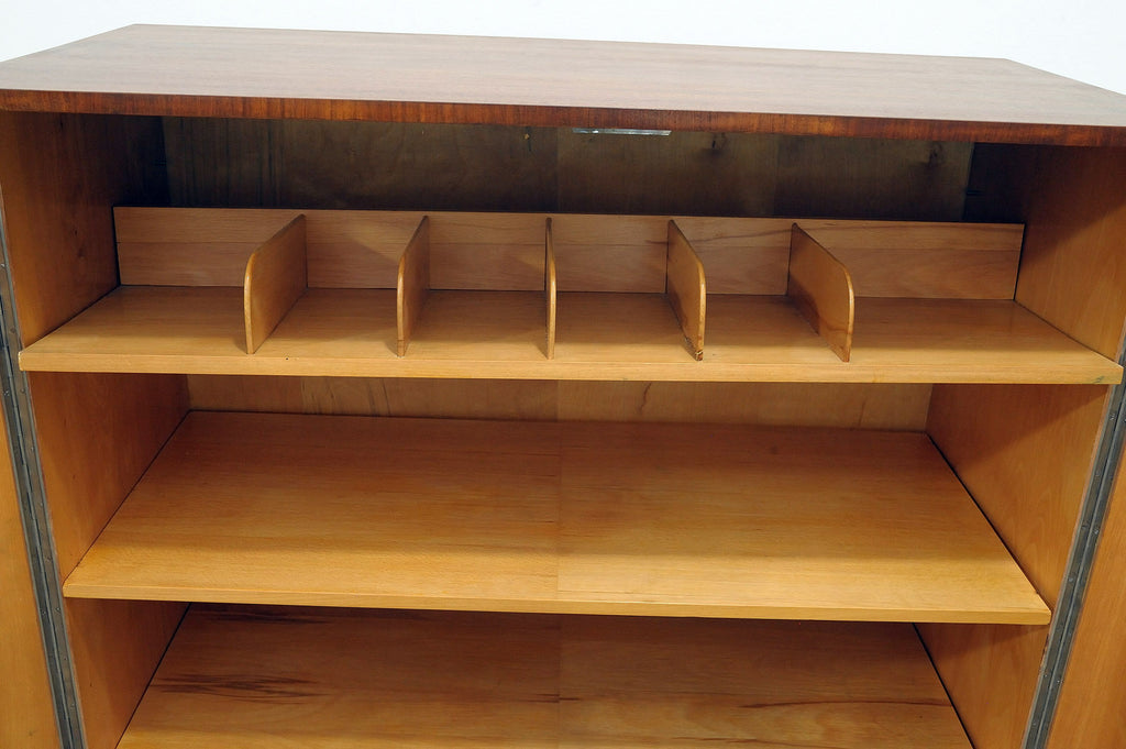 Cette armoire en noyer du milieu du siècle a été conçue par Jindřich Halabala pour UP Závody.