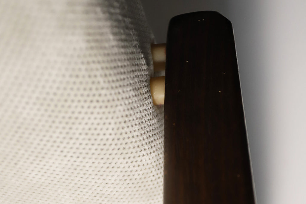 Les chaises ont été entièrement rénovées, ont un nouveau rembourrage et tissu, le bois a été remis à neuf.