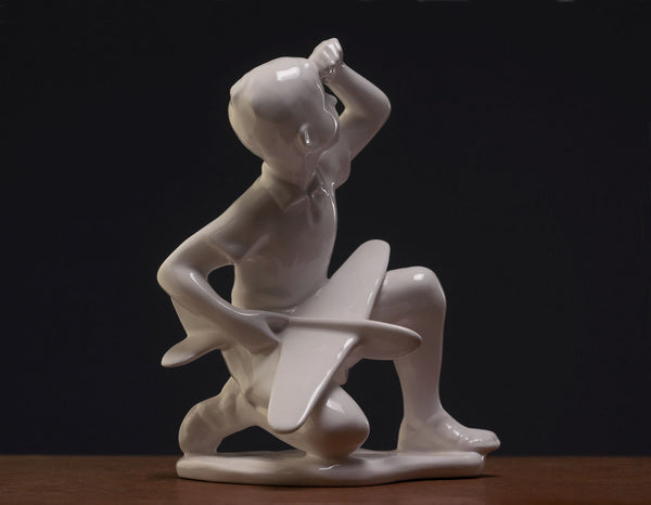 Ceramic Figurine “Boy with an Airplane”, Pexider Letovice, 1950s