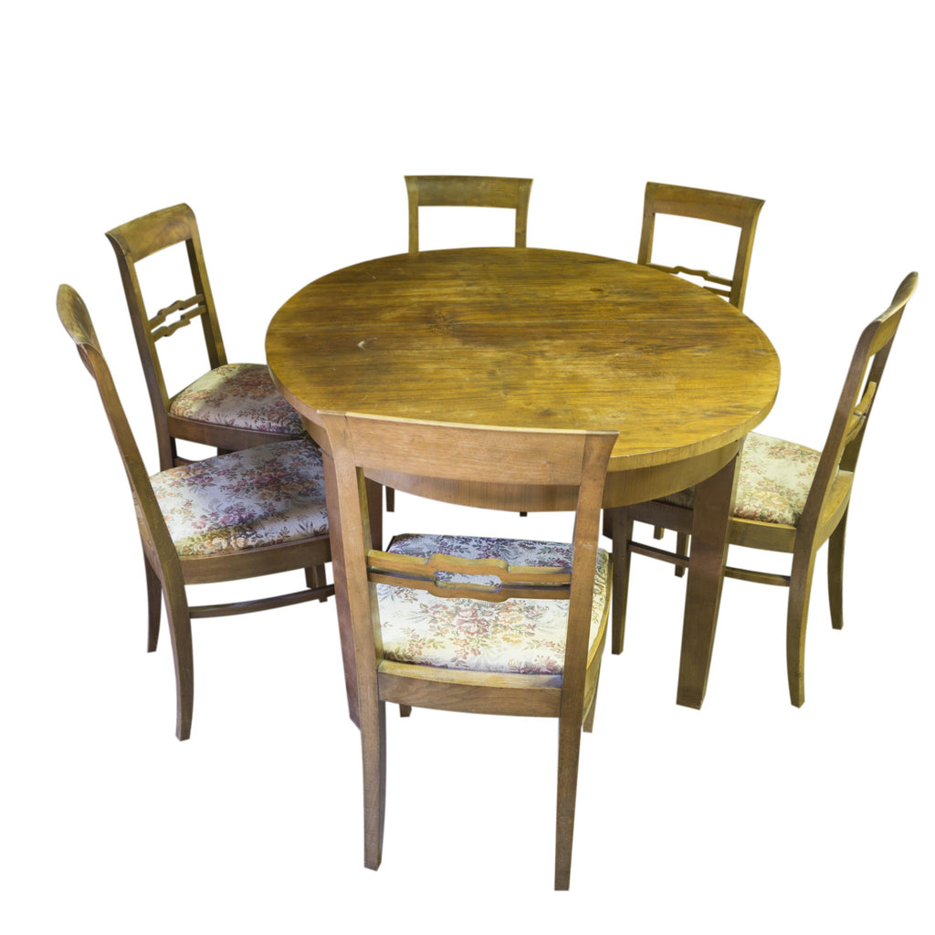 Extendable dining table ART DECO with 6 chairs, circa 1930s, Europe