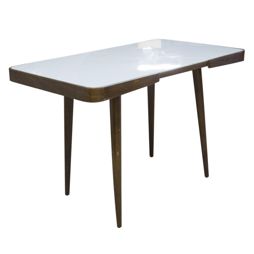 Luxury coffee table, 1960´s. Associated with world-renowned EXPO 58 exhibition in Brussels. A design by uknown author. Beechwood. White glass tabletop. In Very good condition.