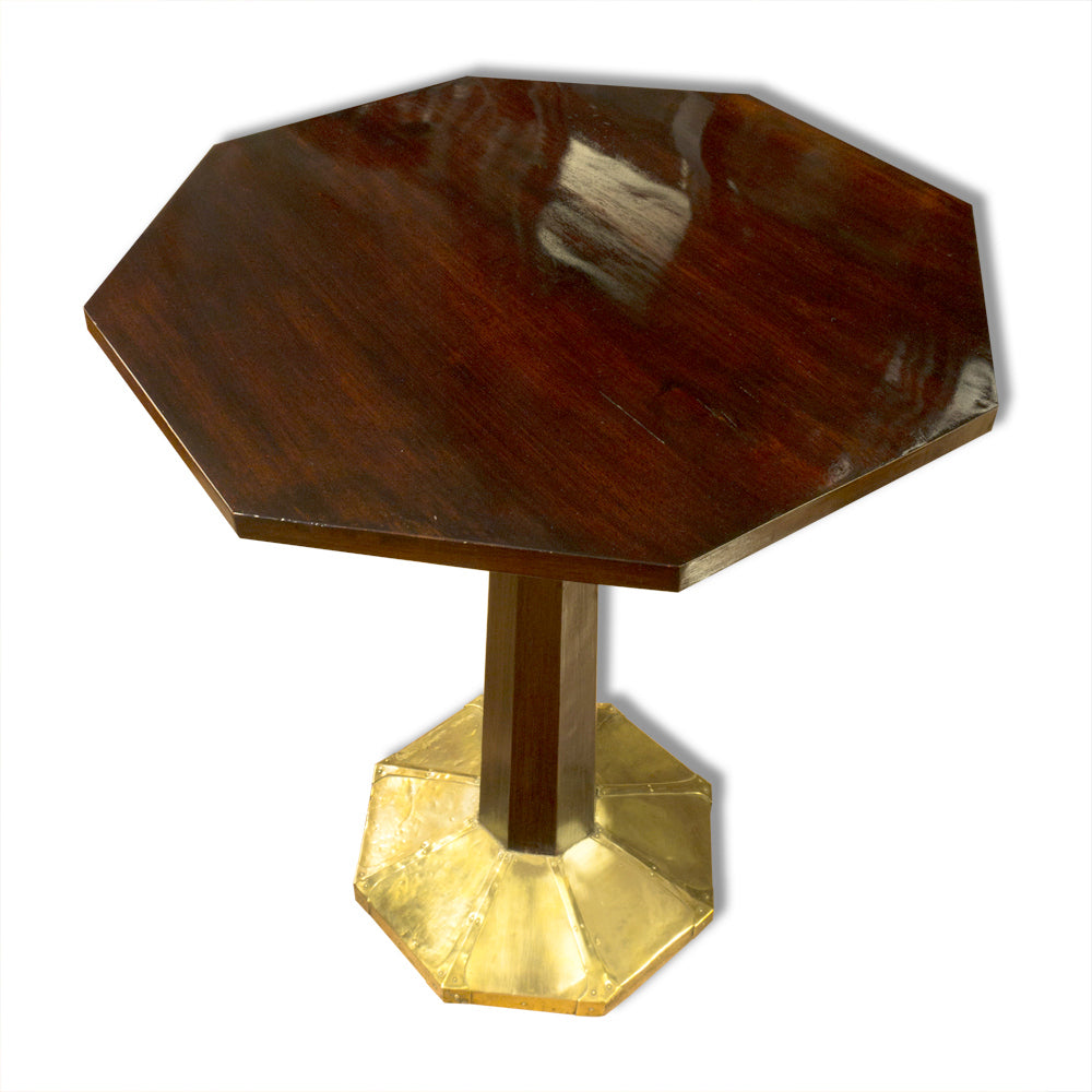 Josef Hoffmann attr., secessionist ebony stained beech spectacular table on brass base. Hand rubbed shellac.