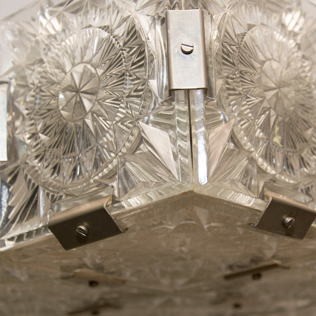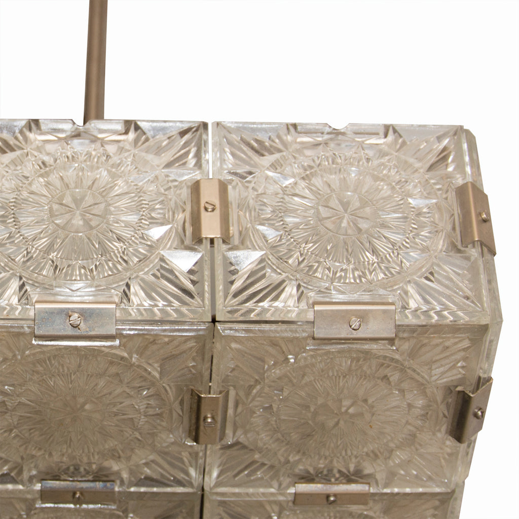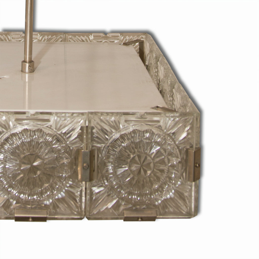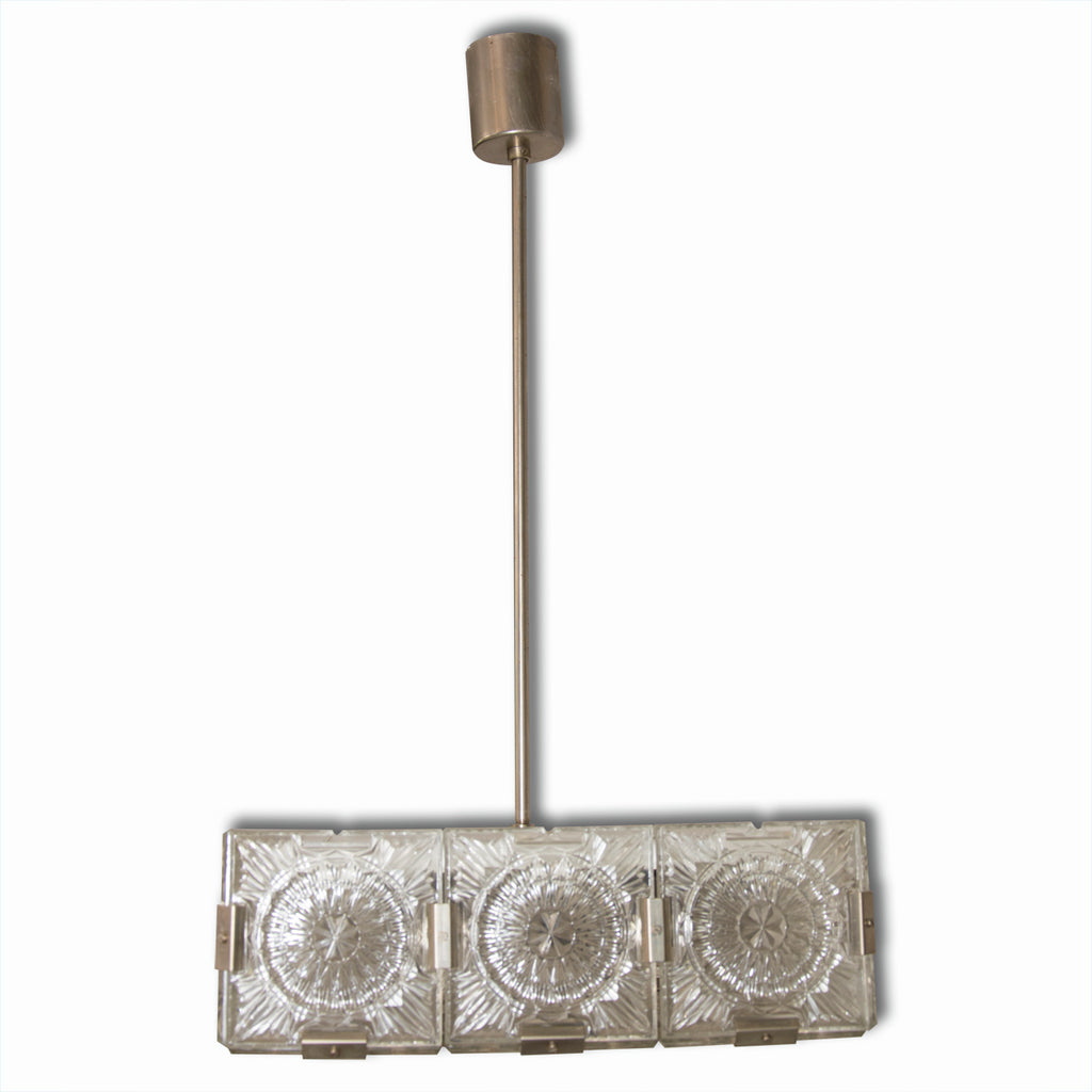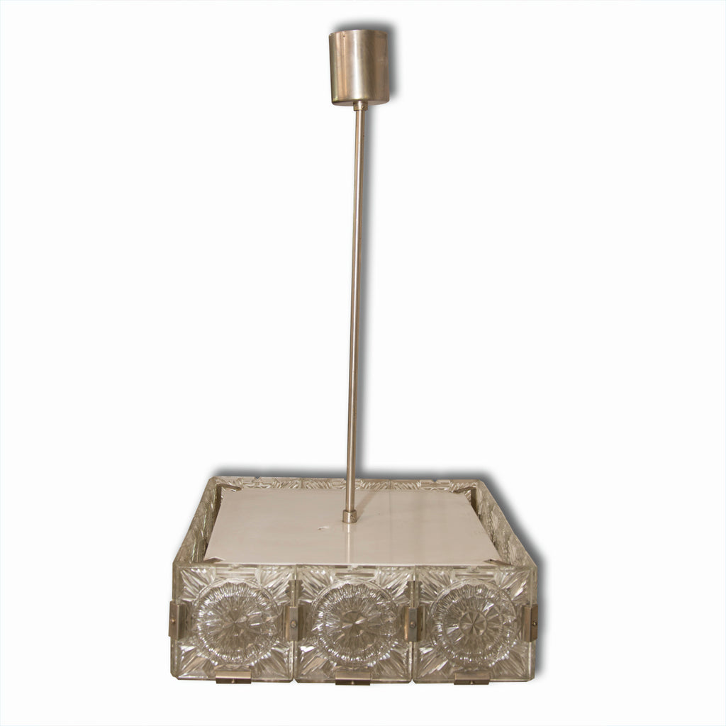 Vintage Glass and chromed steel pendant lamp, 1970s, Czechoslovakia