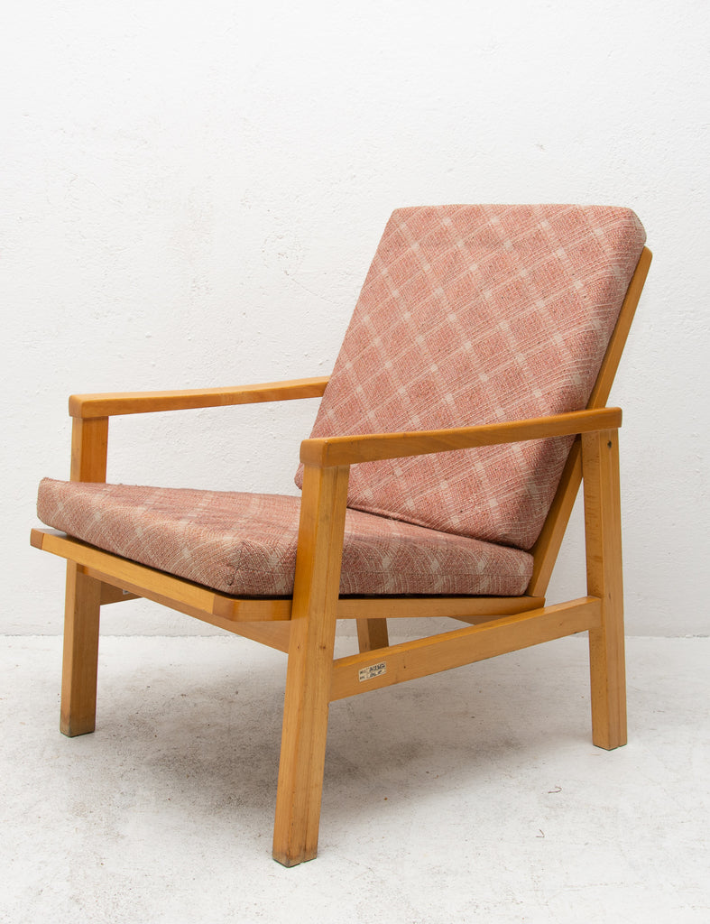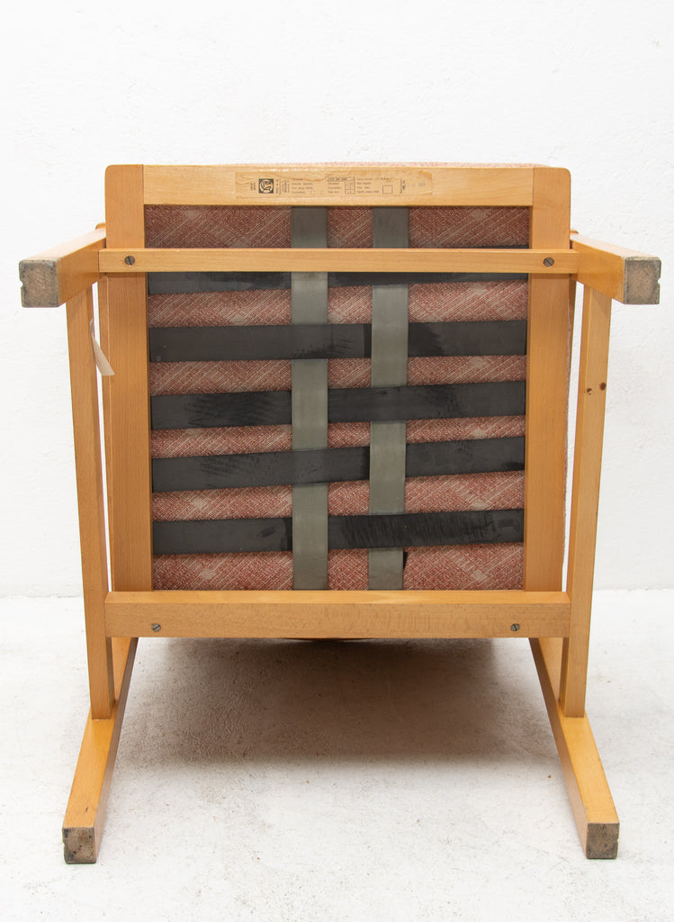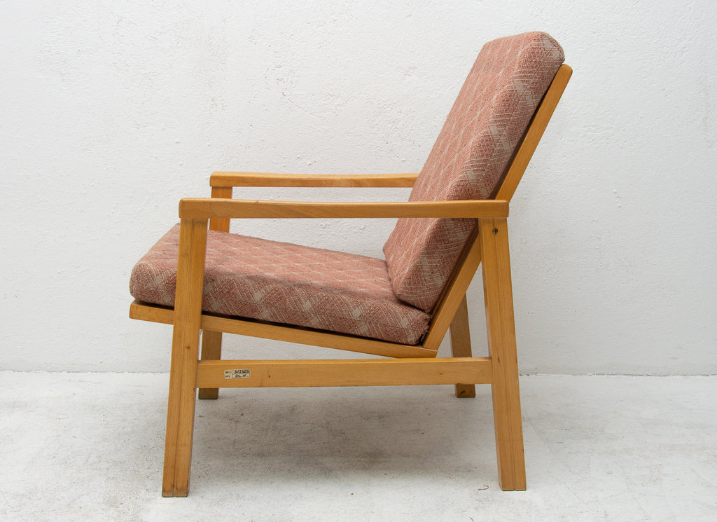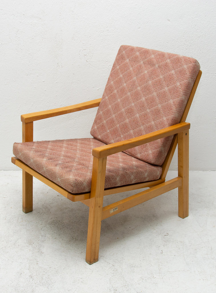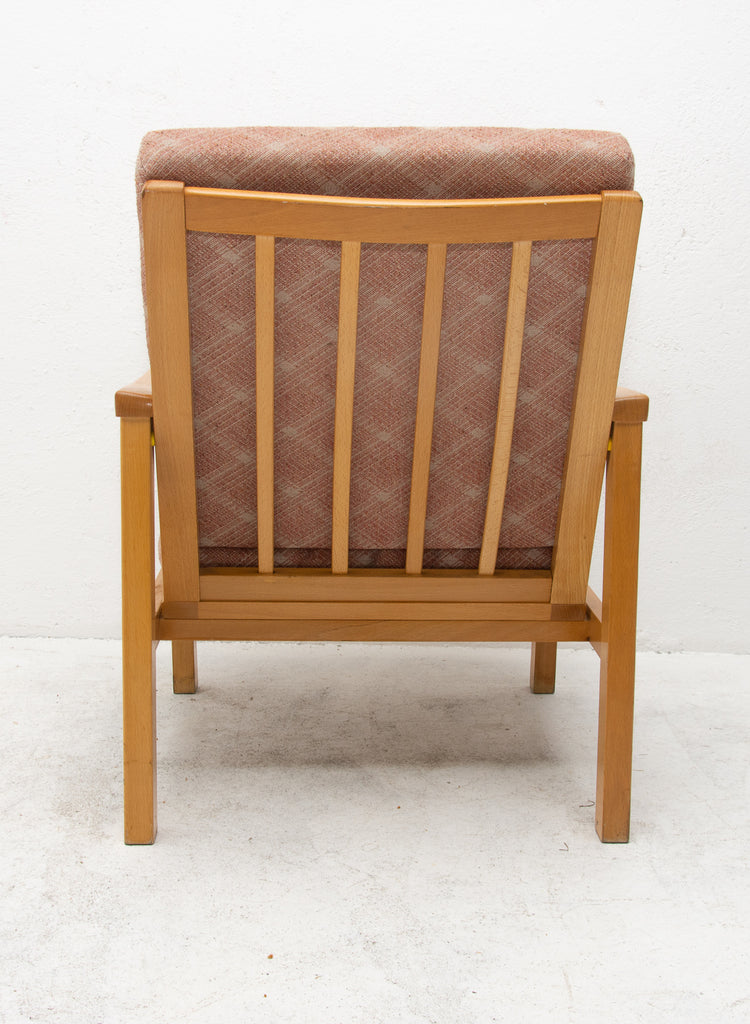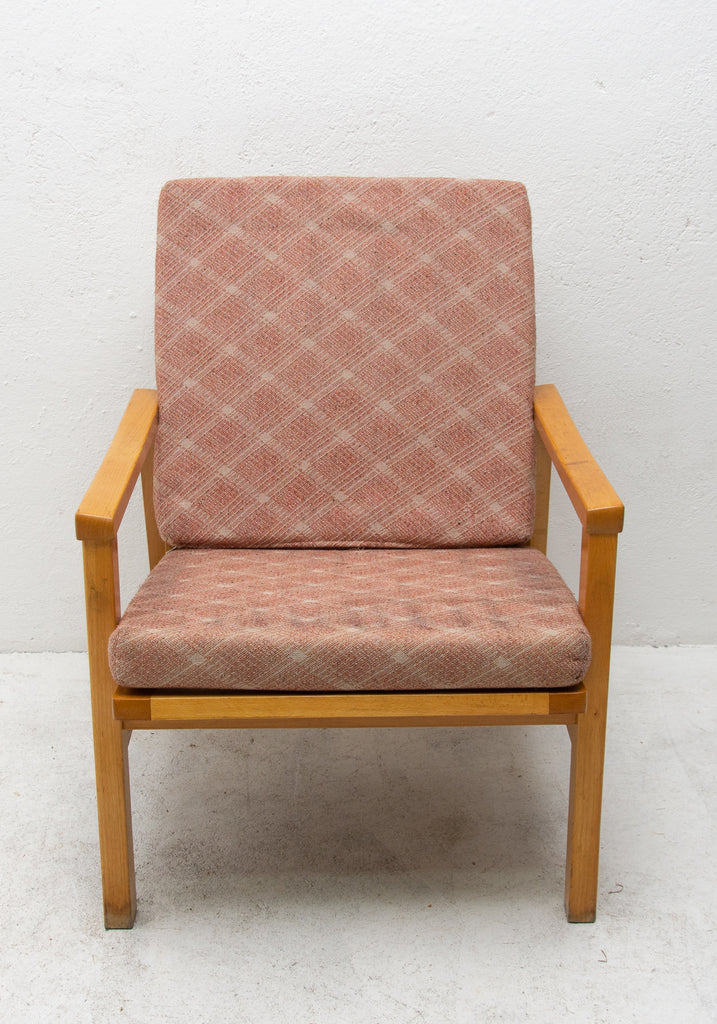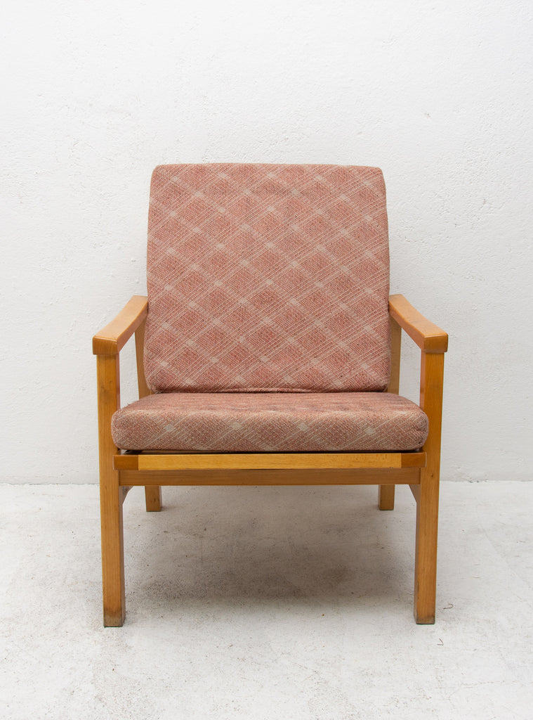 A pair of armchairs in Danish style, made in the former Czechoslovakia in the 1970´s . The chairs were produced by TON Bystřice pod Hostýnem company( Thonet successor in Czechoslovakia) The structure is made of beech wood and the chairs has original upholstery. The chairs are in very good Vintage condition, bears slight signs of age and using. Price is for the pair