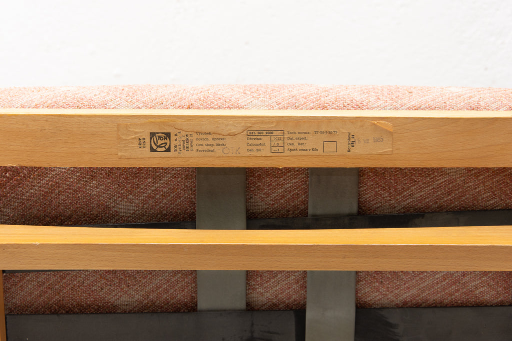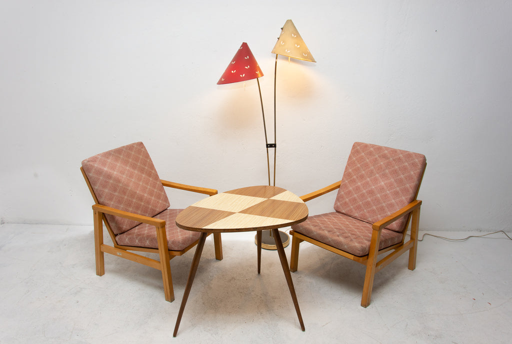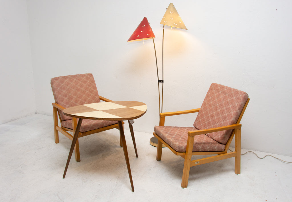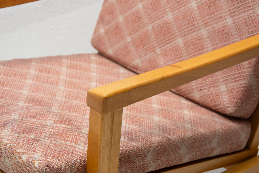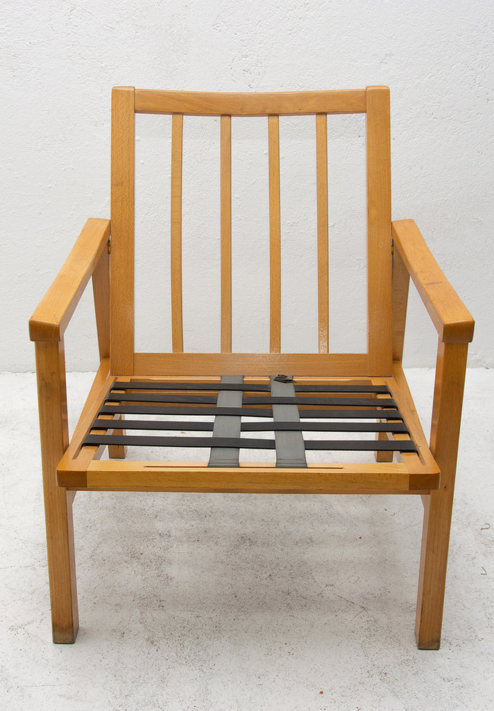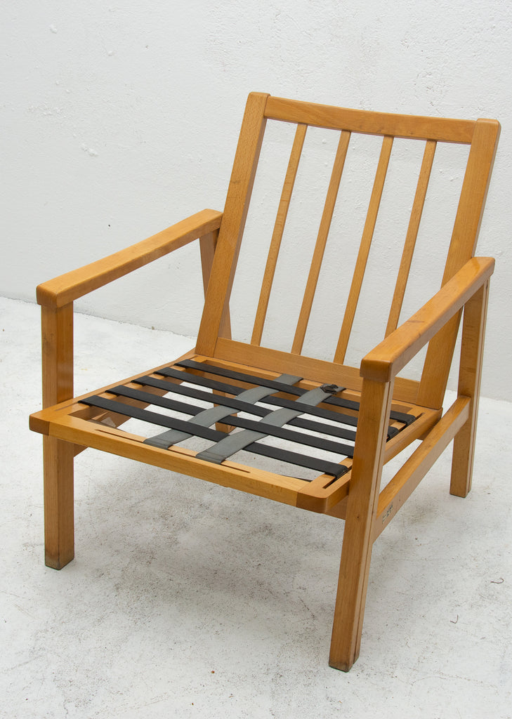 A pair of armchairs in Danish style, made in the former Czechoslovakia in the 1970´s . The chairs were produced by TON Bystřice pod Hostýnem company( Thonet successor in Czechoslovakia) The structure is made of beech wood and the chairs has original upholstery. The chairs are in very good Vintage condition, bears slight signs of age and using. Price is for the pair