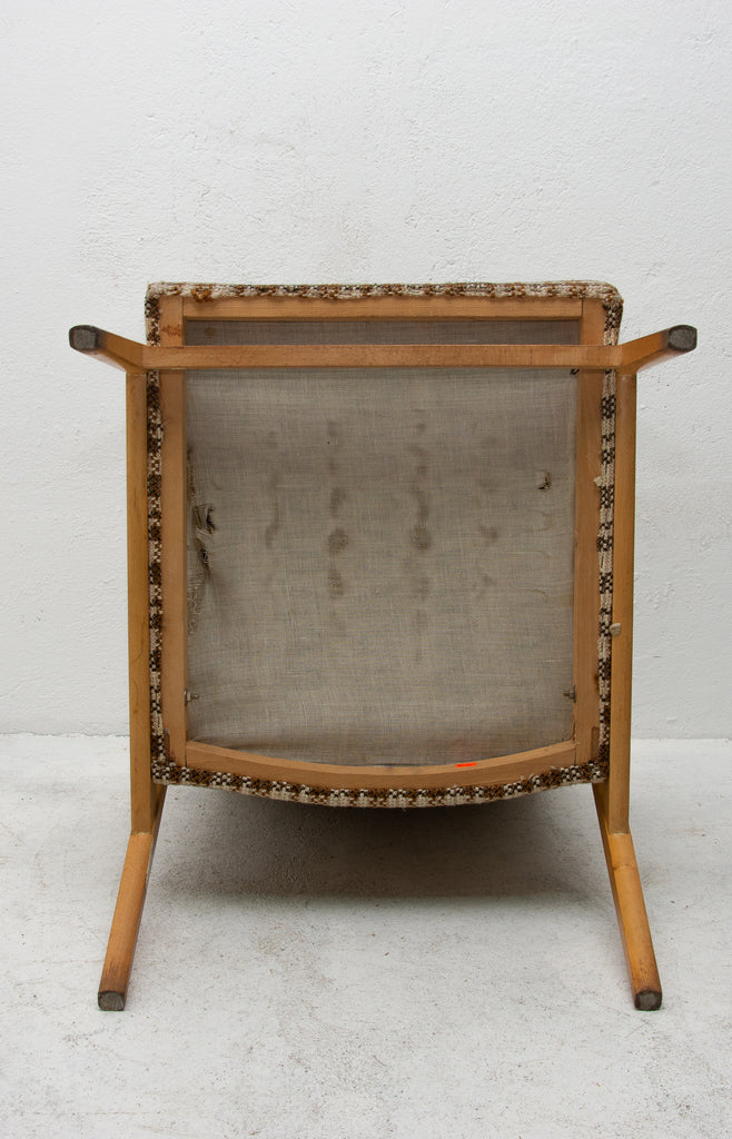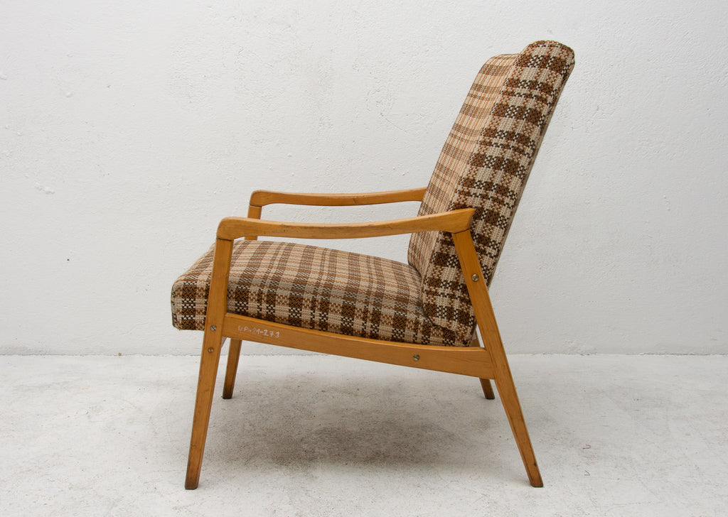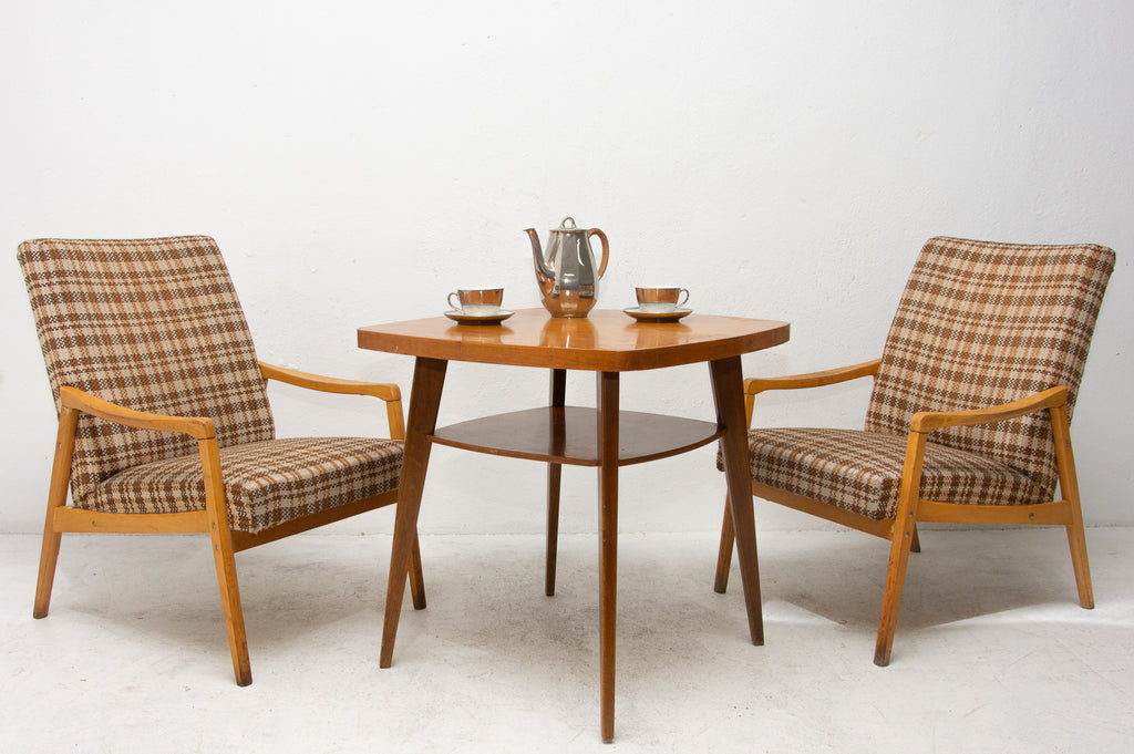 A pair of armchairs, made in the former Czechoslovakia in the 1970´s. It was designed by Jiří Jiroutek for Interiér Praha as part of U-550 living room set. The structure is made of beech wood and the chairs has original upholstery. The chairs are in very good Vintage condition, bears slight signs of age and using. Price is for the pair