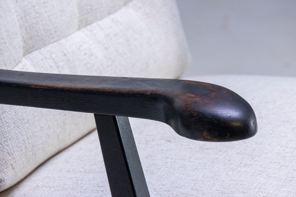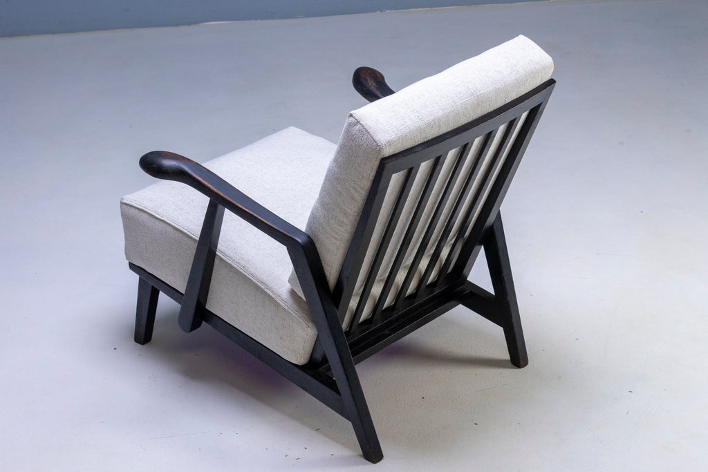 A beautifully restored pair of Art Deco armchairs produced by ULUV in the 1950s. These iconic chairs represent the refined craftsmanship of the period, combining sculptural wooden forms with elegant curves typical of mid-century Art Deco design.