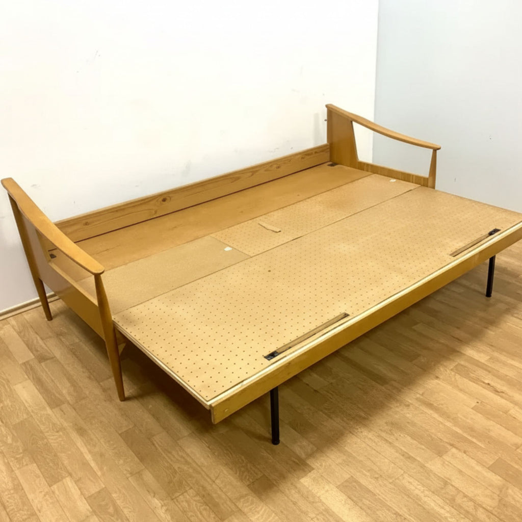 Mid-Century Sofa Bed by Dřevotvar, 1960s Czech Brussels Style, Czechoslovakia